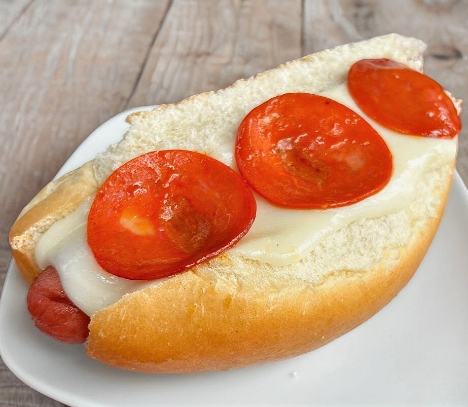 Pan de panadería, mayonesa, salchicha de pavo, cremoso queso mozzarella derretido, pepperoni y aderezo de chipotle.