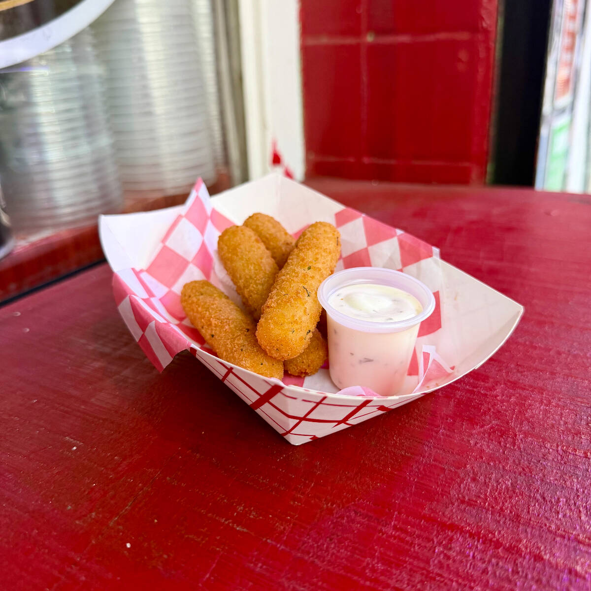 Disfruta de una exquisita porción de 4 Deditos de Queso Mozzarella recién hechos, calientitos y crujientes acompañados de aderezo ranch.
