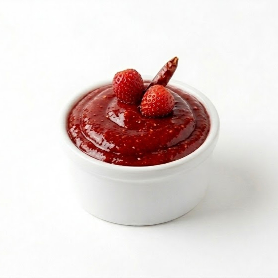 Salsa hecha con dulce picafresa y chiles rojos