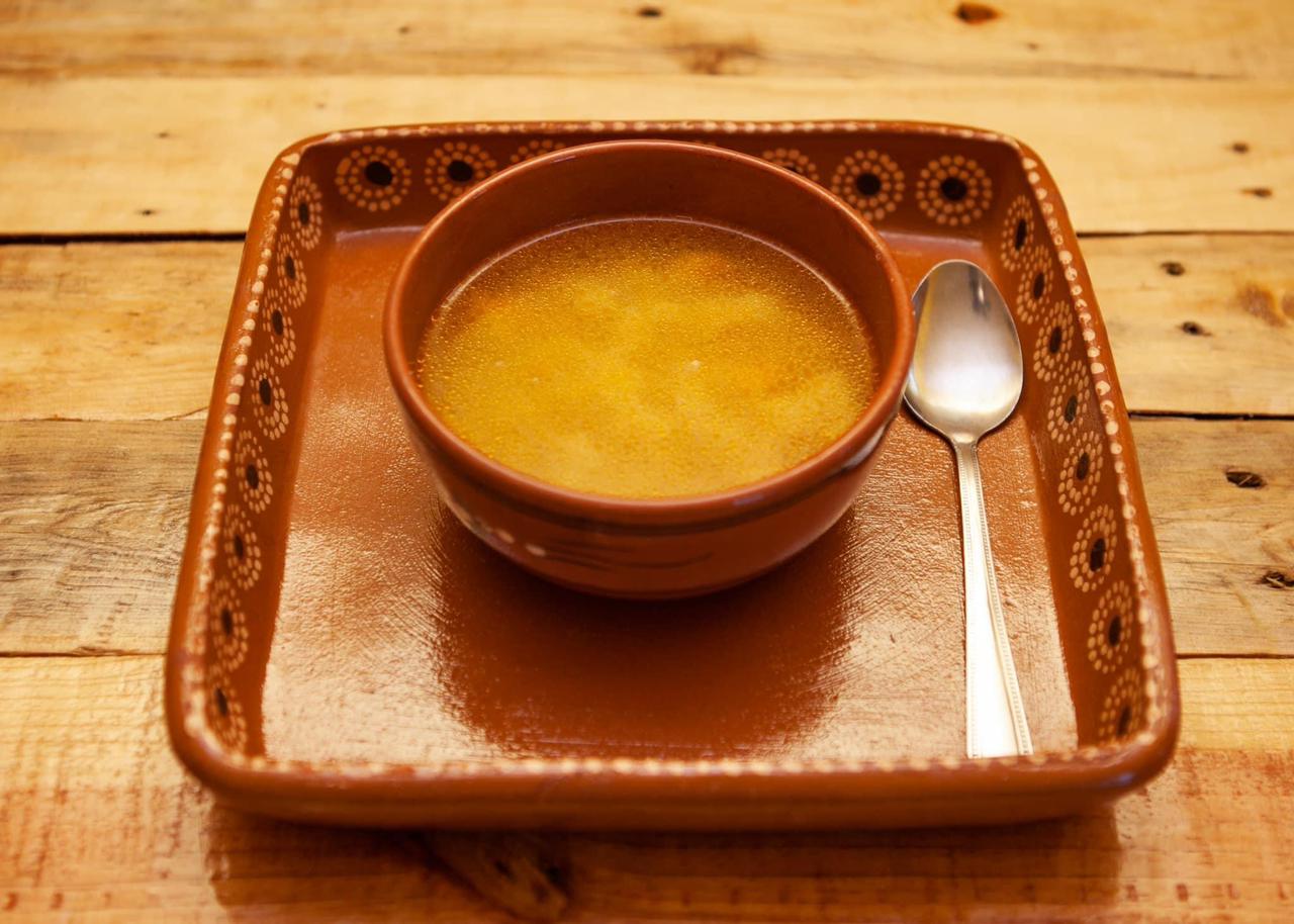Caldo de pollo con arroz.