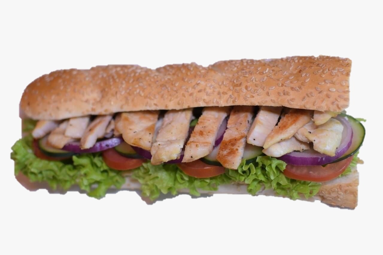 DE POLLO A LA PLANCHA, LECHUGA, TOMATE, PEPINO, MAYONESA, CEBOLLA MORADA Y ADEREZO CHIPOTLE