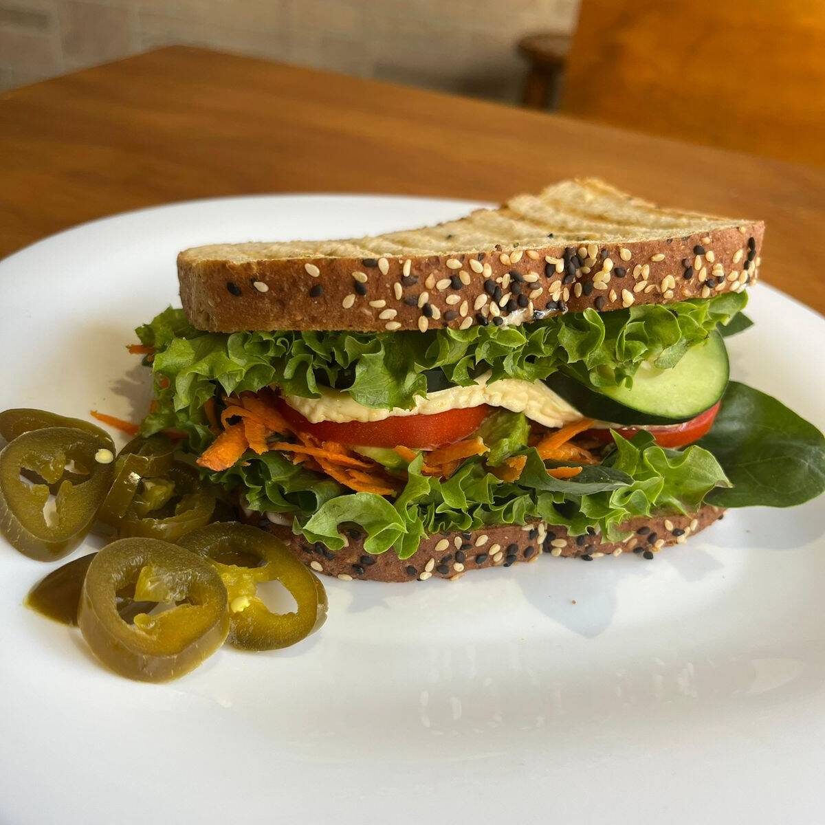 SANDWICHÓN, DE ENSALADA DE POLLO, ENSALADA DE CODOS, MIX DE LECHUGA, ZANAHORIA Y CHILES JALAPEÑOS