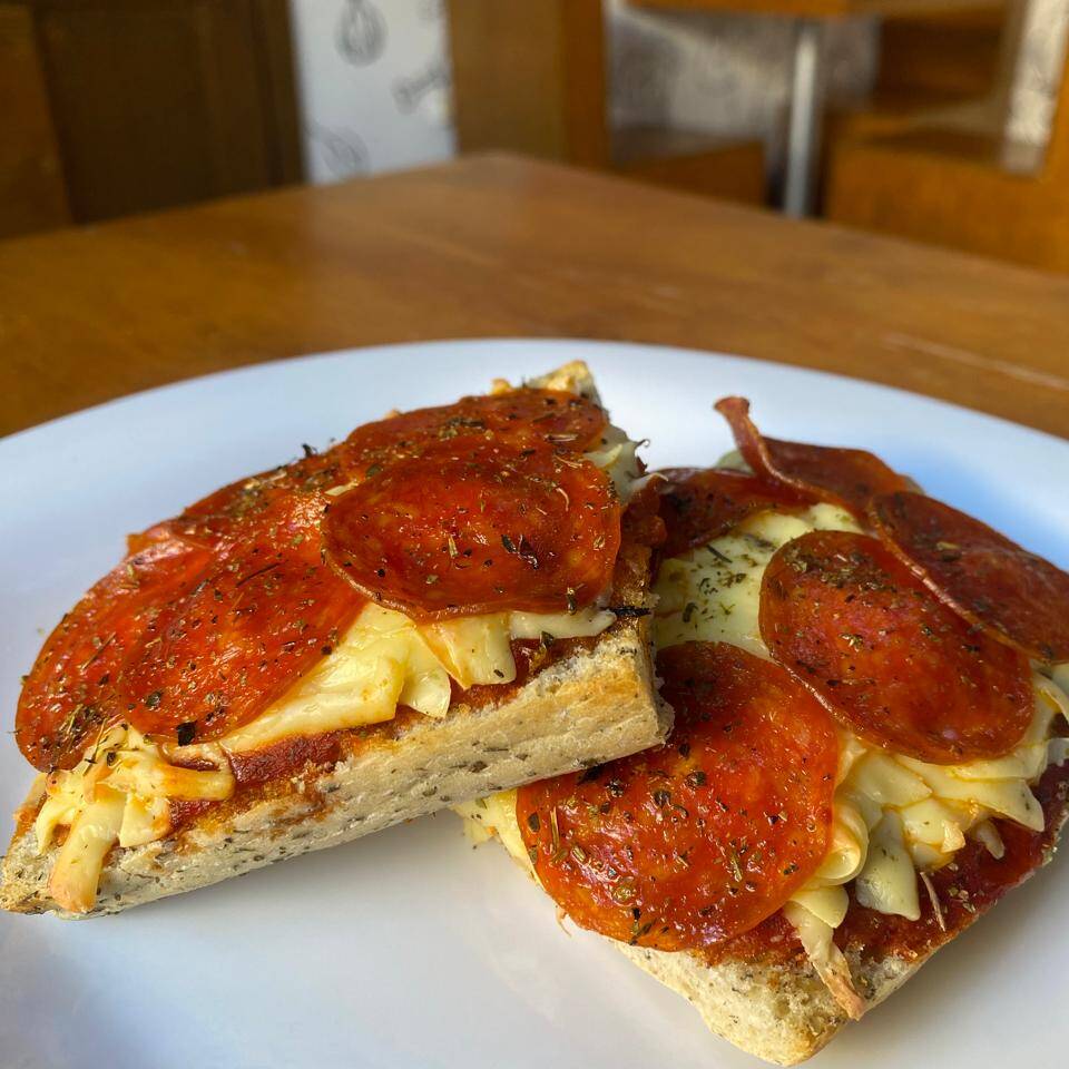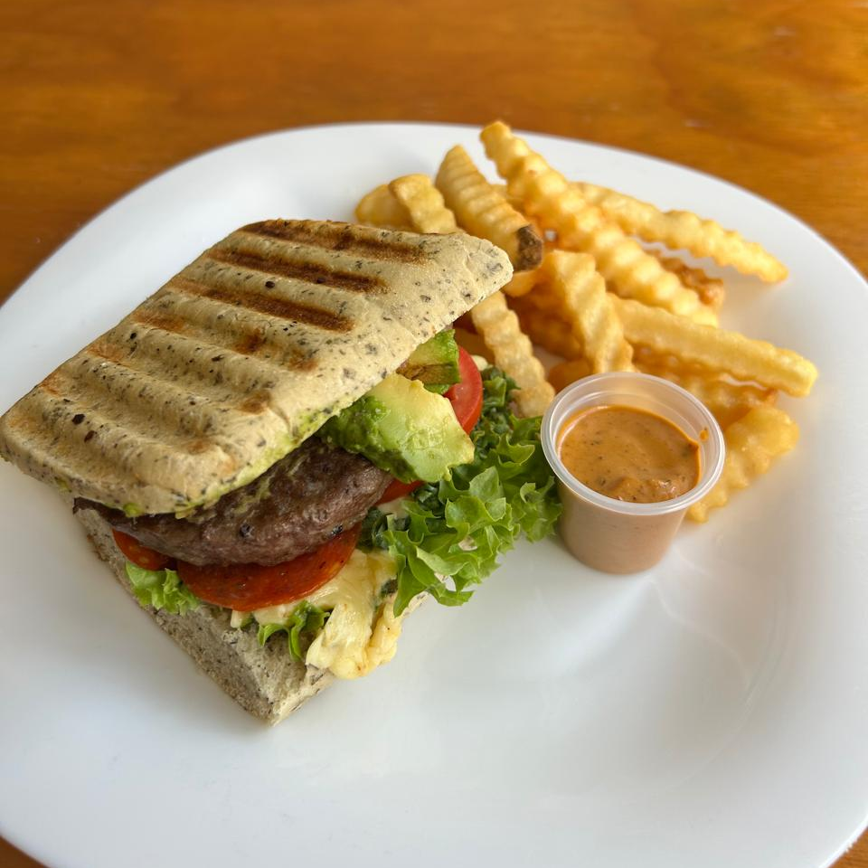 CARNE, QUESO MANCHEGO, PEPERONI, LECHUGA, TOMATE, MAYONESA Y ADEREZ
