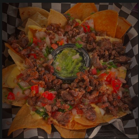tostada deshidratada al carbón, con asada, queso gratinado y guacamole