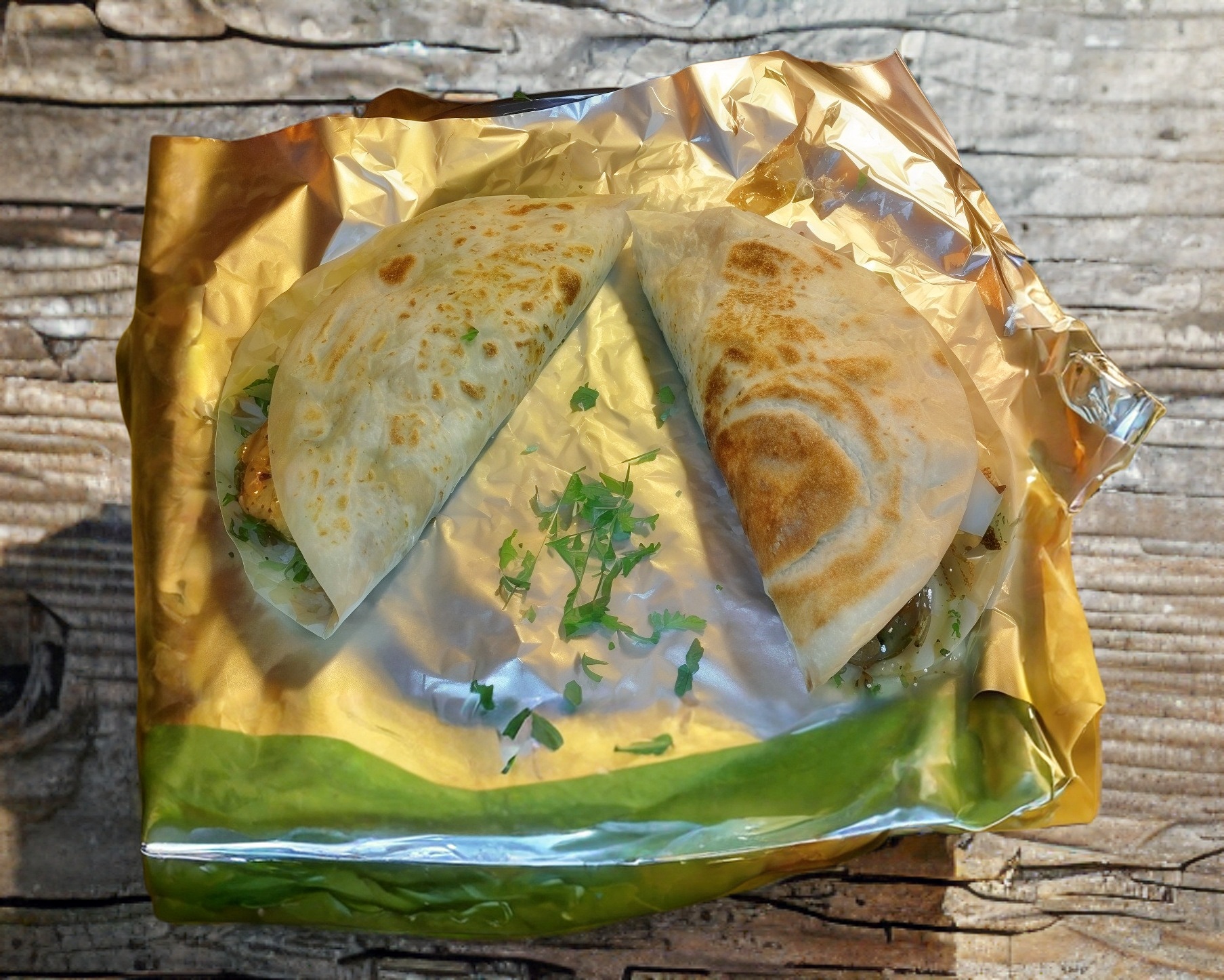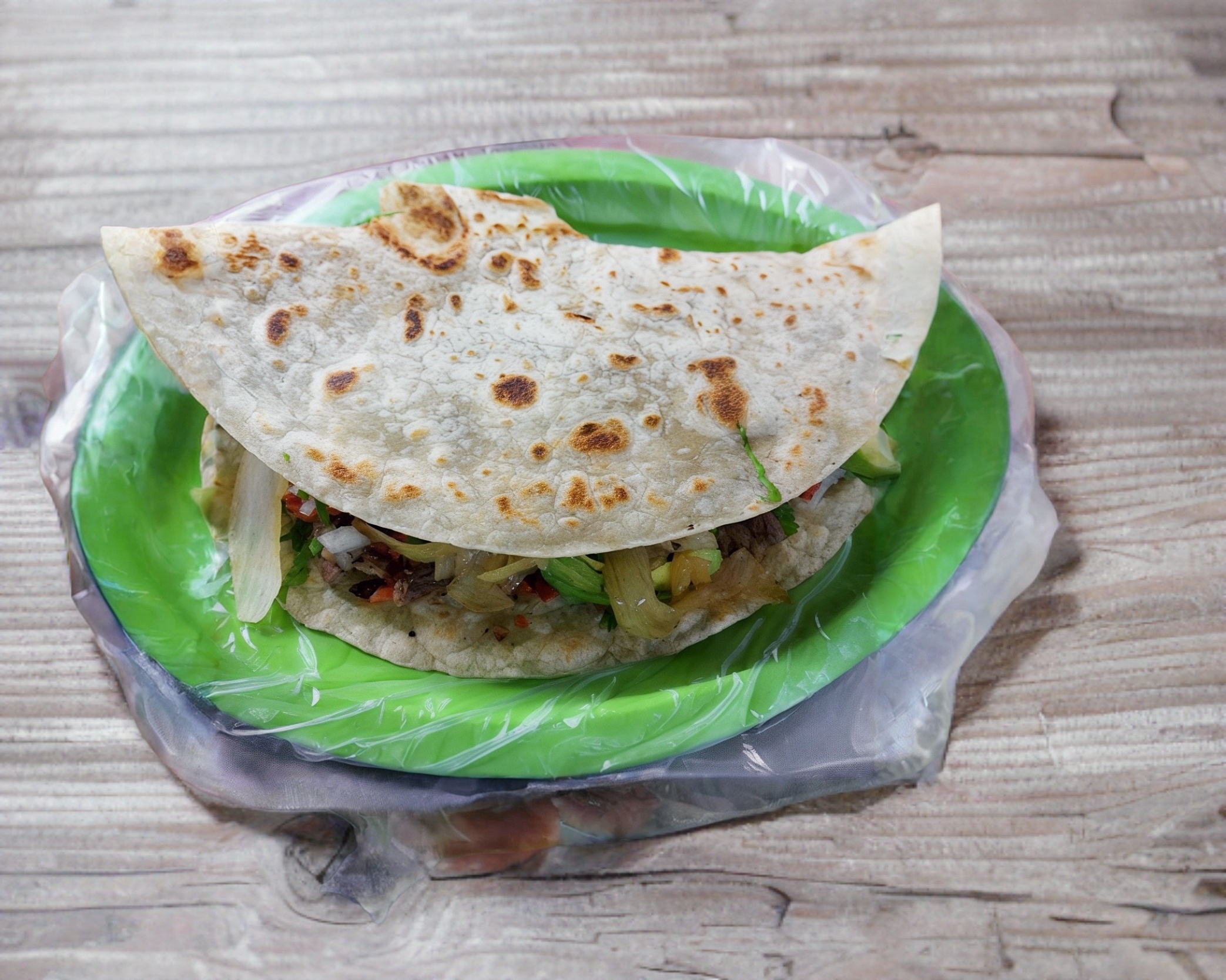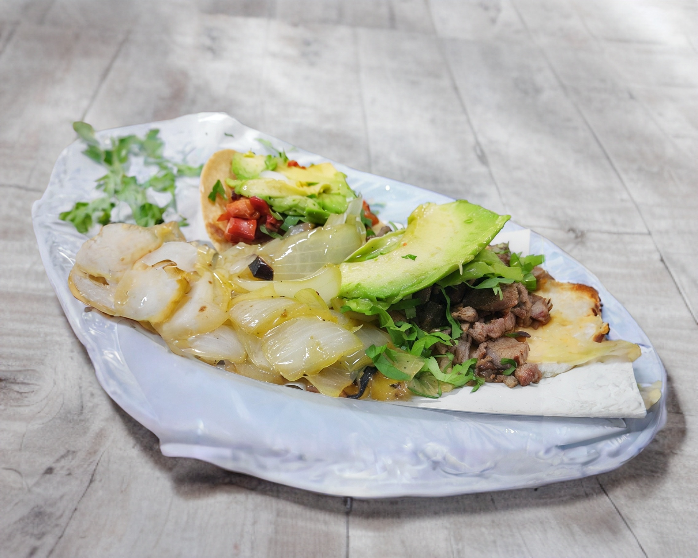 TORTILLA CHICA DE HARINA. PROTEINA A ELEGIR, QUESO OAXACA Y AGUACATE.