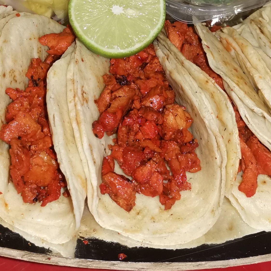 Órden de ricos tacos de trompo, acompañados de su refresco bien helado. El refresco se manda según su existencia, puede ser: Fanta, Fresca, Mundet, Sprite.