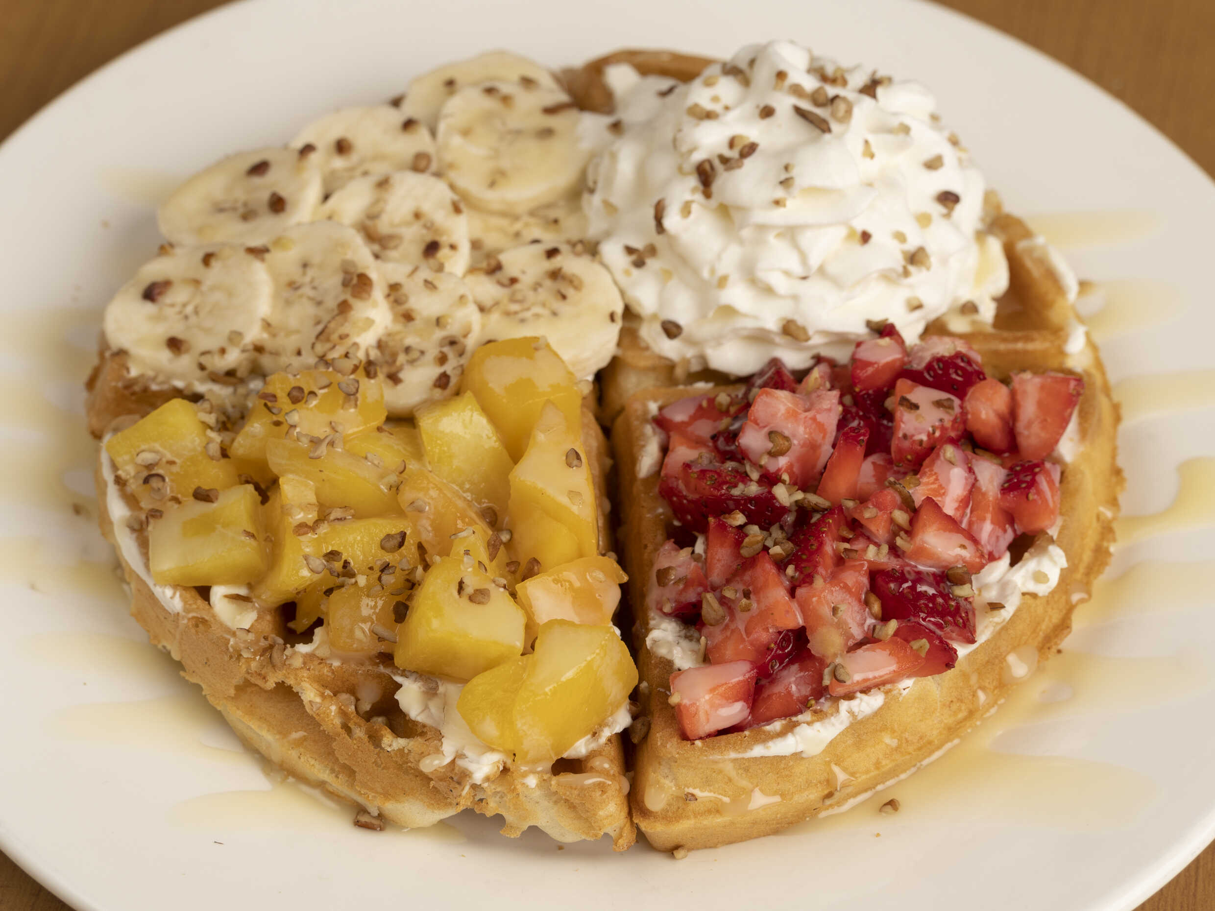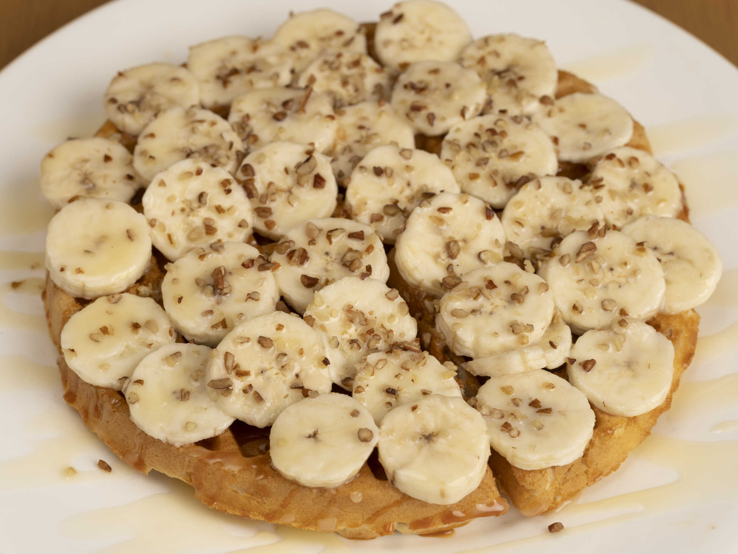 Cajeta, plátano, lechera y nuez. Elígela en tu opción favorita, waffle, crepa o hot-cakes.