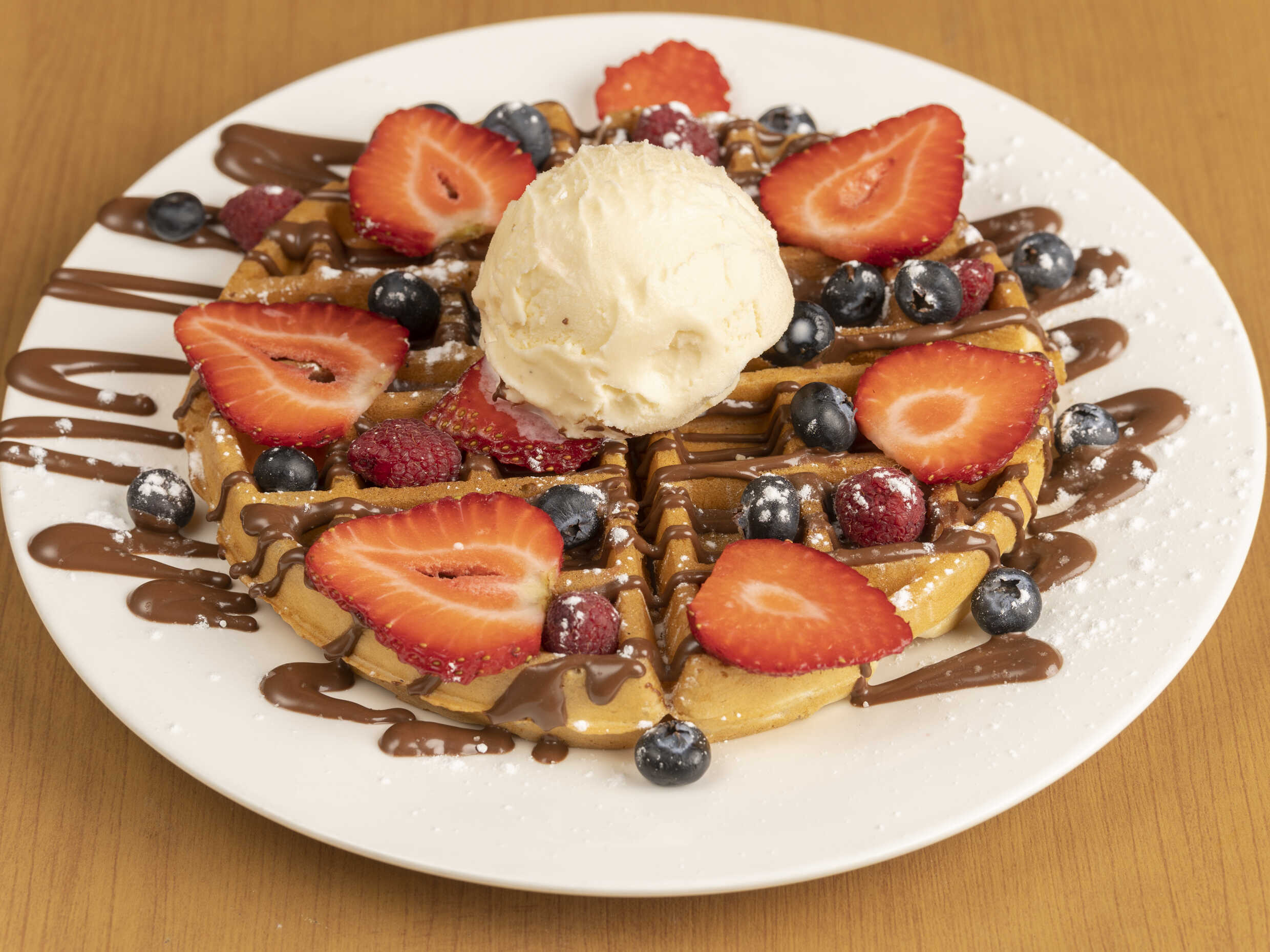 Nutella, fresa, frambuesa, blueberry, helado de vainilla y azúcar glass. Elígela en tu opción favorita, crepa, waffle o hot-cakes.