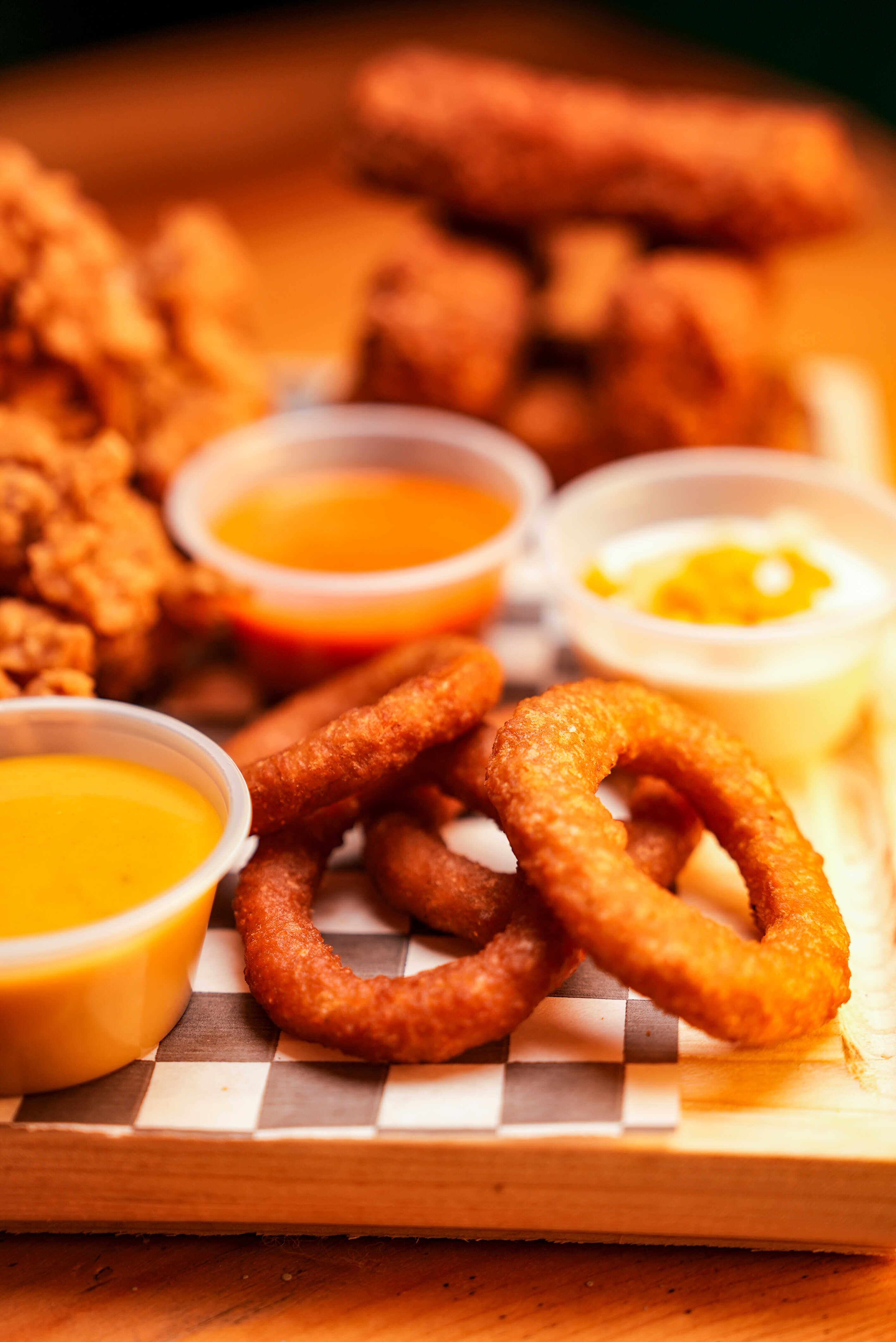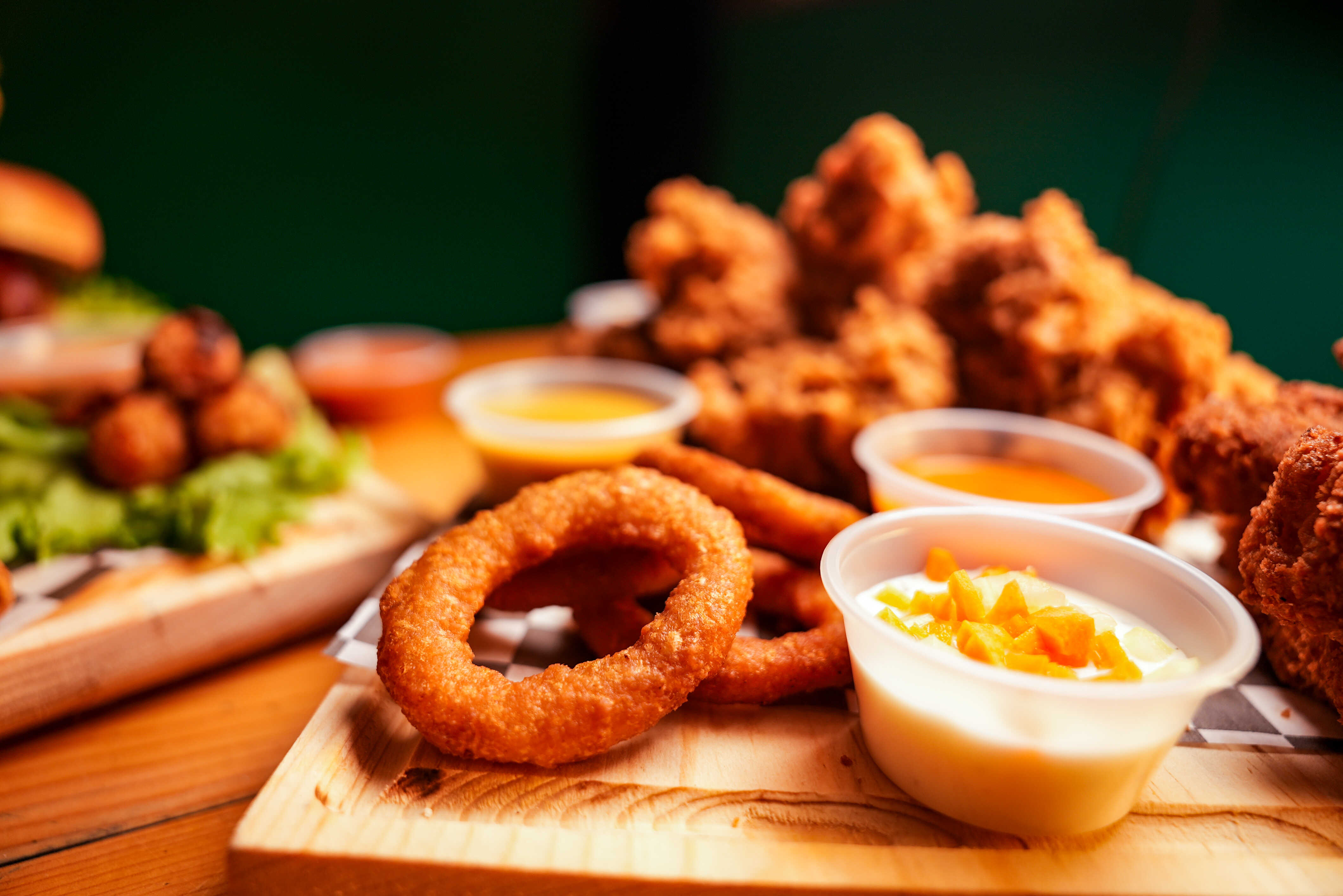 Media orden de aros de cebolla hechos de la casa el rey, más crujientes, más grandes.