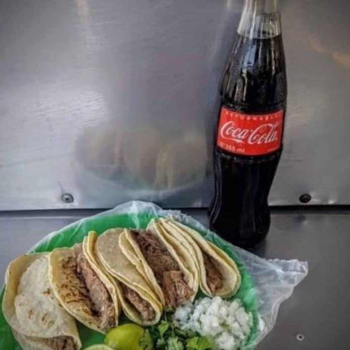 5 Tacos de maíz barbacoa más refresco en lata 330 ml (Coca-Cola original, Sprite, Fanta).