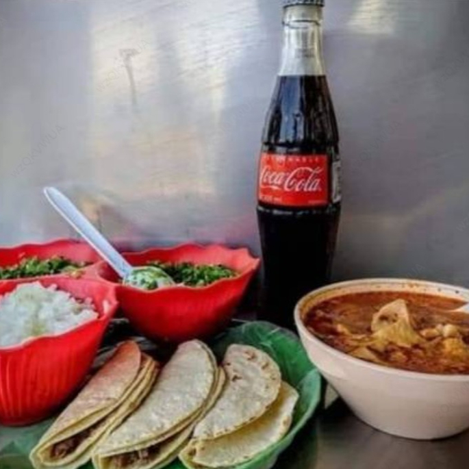 1 L De menudo acompañado con cebolla, cilantro, chile en polvo y tortillas de maíz.