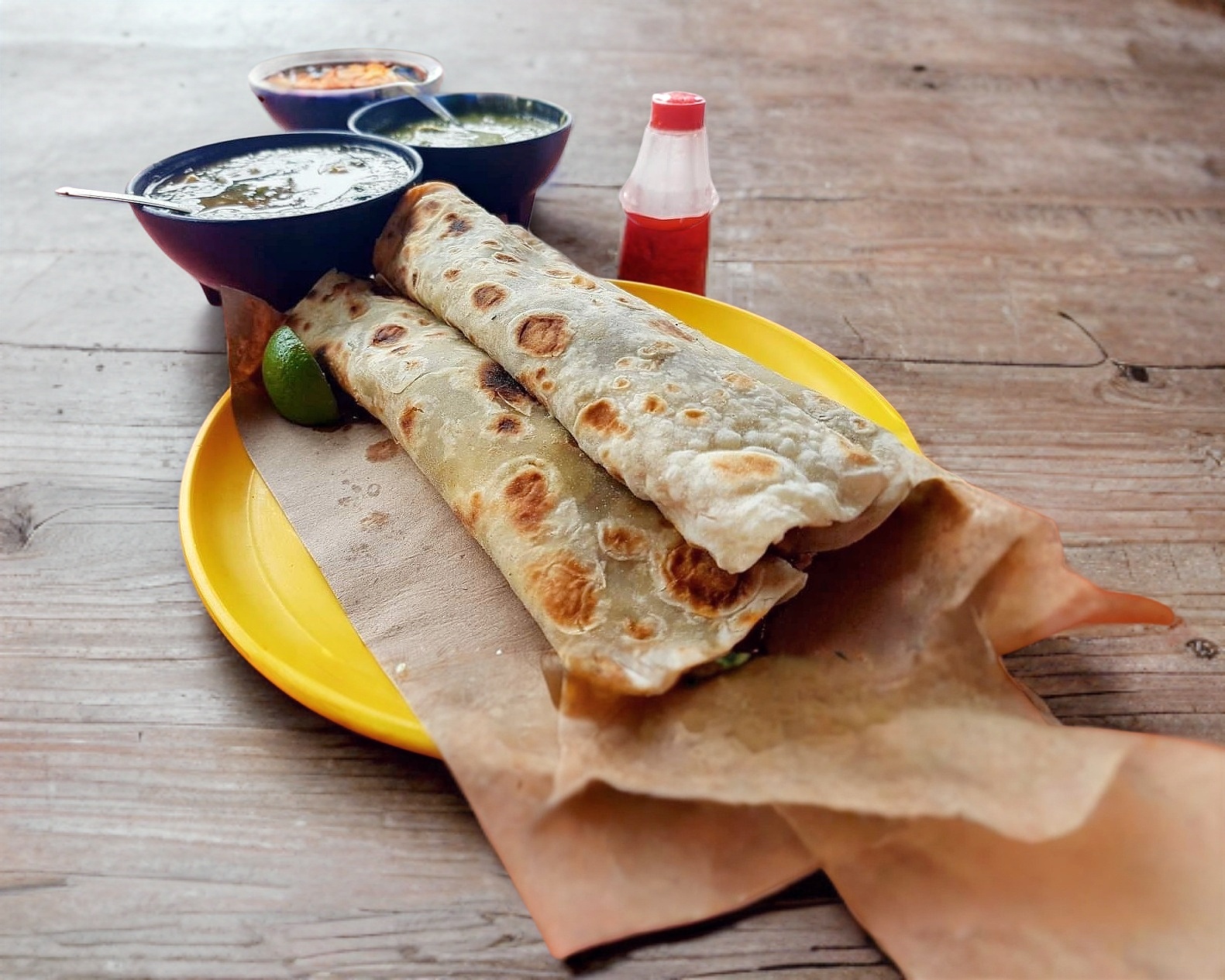 3 gorditas de maíz y 3 flautas de harina. Elige 3 guisos, uno para cada una.