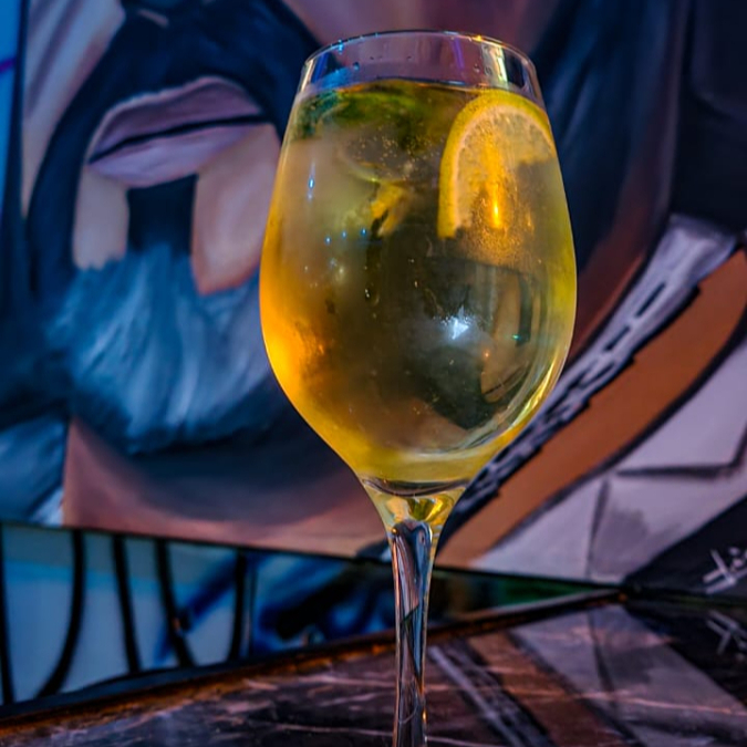 Curazao, prosecco y lima.