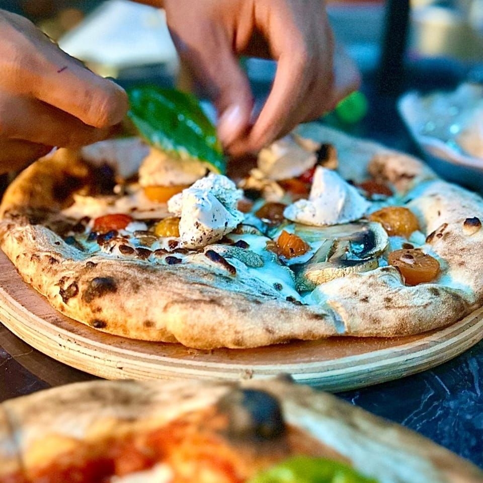 Mozzarella, champiñón, cherry, queso ricotta, parmesano y albahaca.