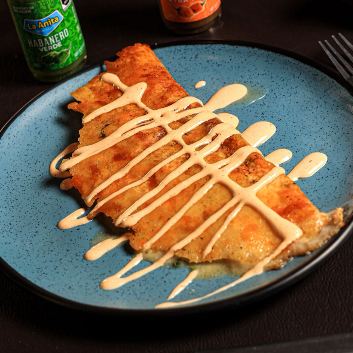 Aguacate, Queso Chihuahua por dentro, Aderezo chipotle y chile toreado por fuera
