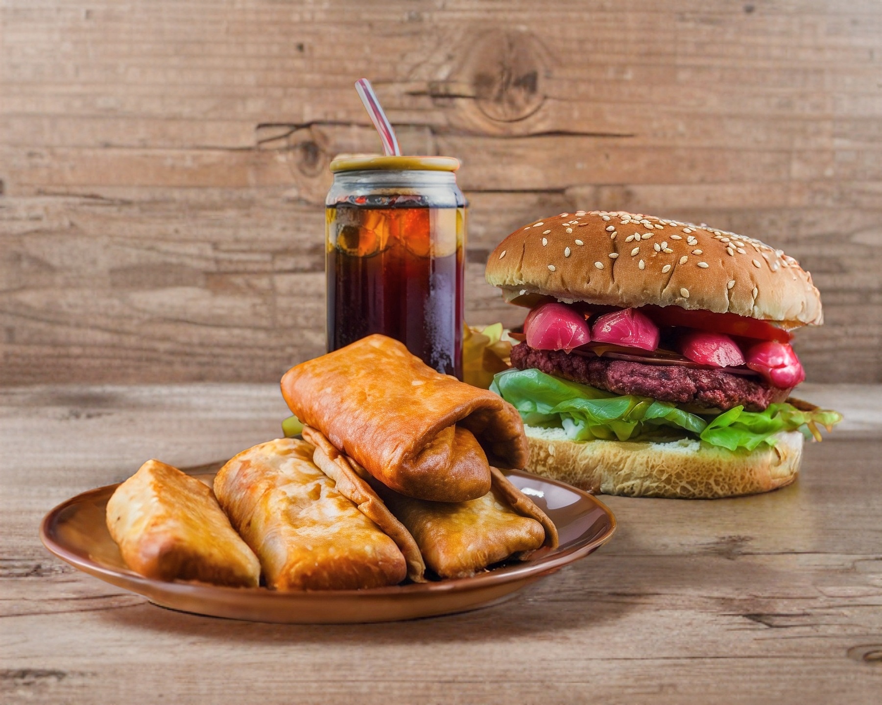 Hamburguesa Carne Tradicional, Salchichas y Papas*1 + Burrito*1 + Litro de Té de Limón*1