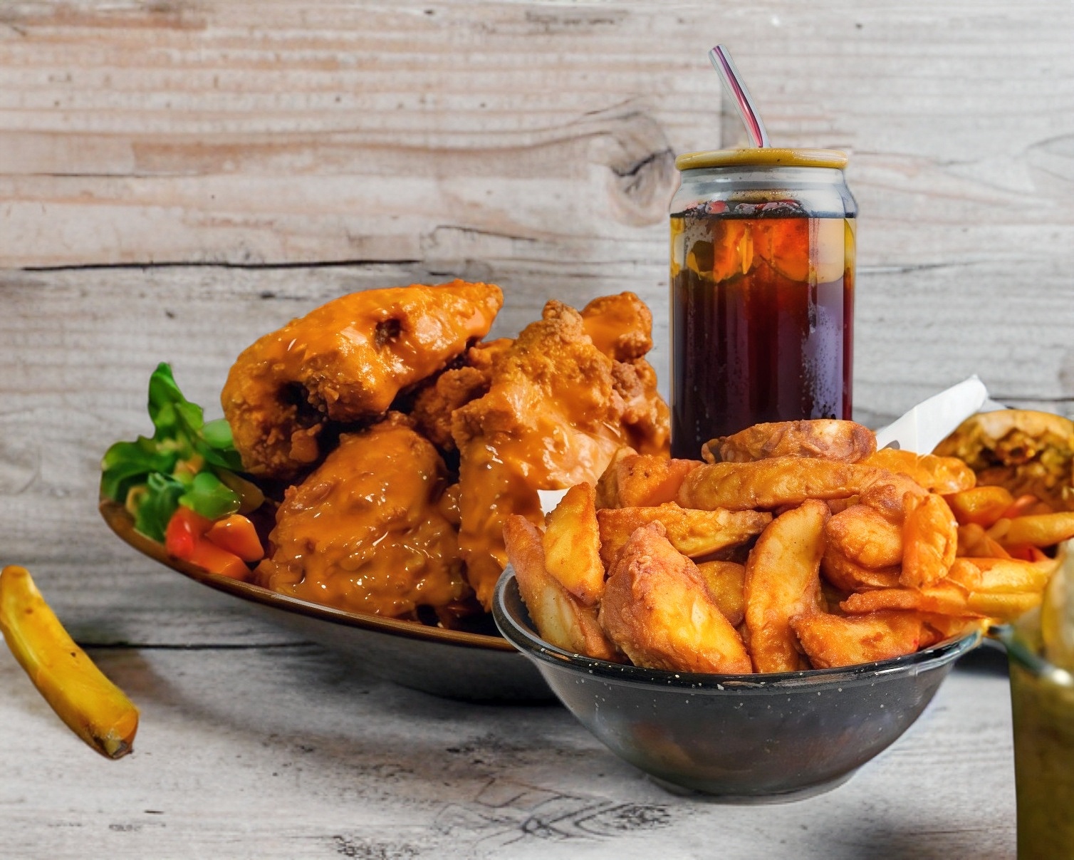 Litro de Té de Limón*1 + 1/2 Orden de Papas Gajo*1 + BONELESS 1/2 ORDEN (5 PZAS)*1