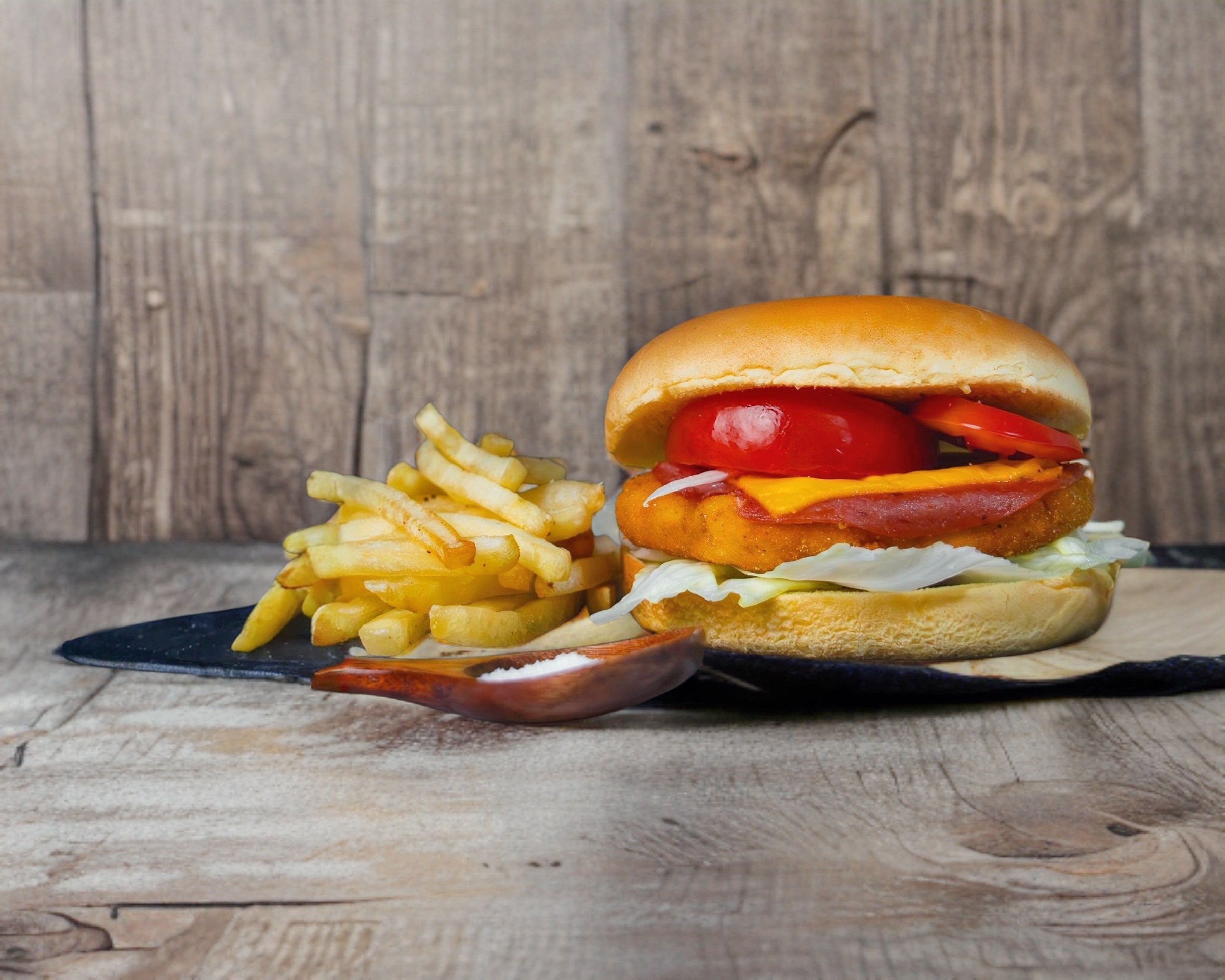 Hamburguesa de Pollo y Porción de Papas