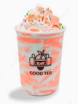 Smoothie a base de té de jazmín, trocitos de fresa, perlas de sabores y una capa de queso crema, dulce sabor matcha o salado.