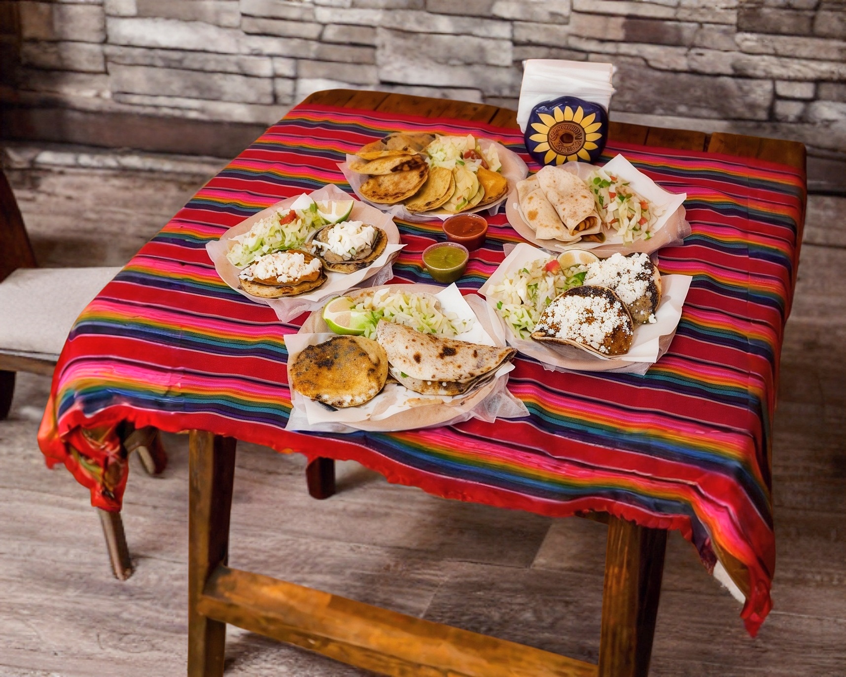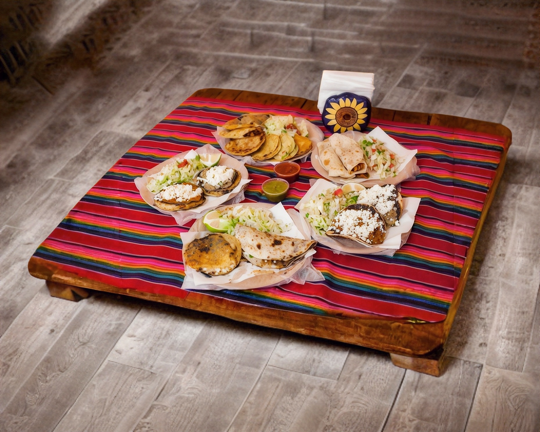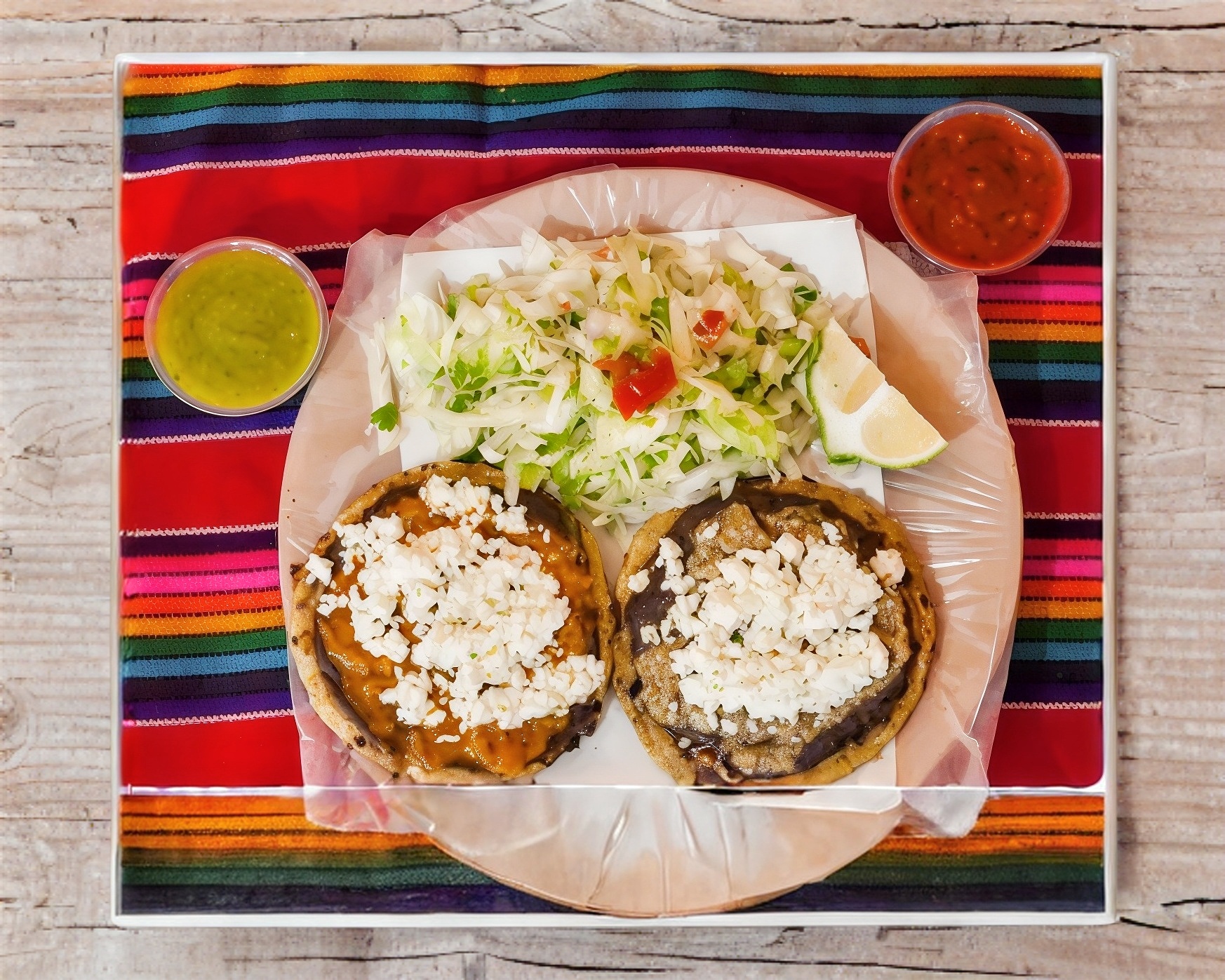 Incluye 2 salsas, cebolla, cilantro.