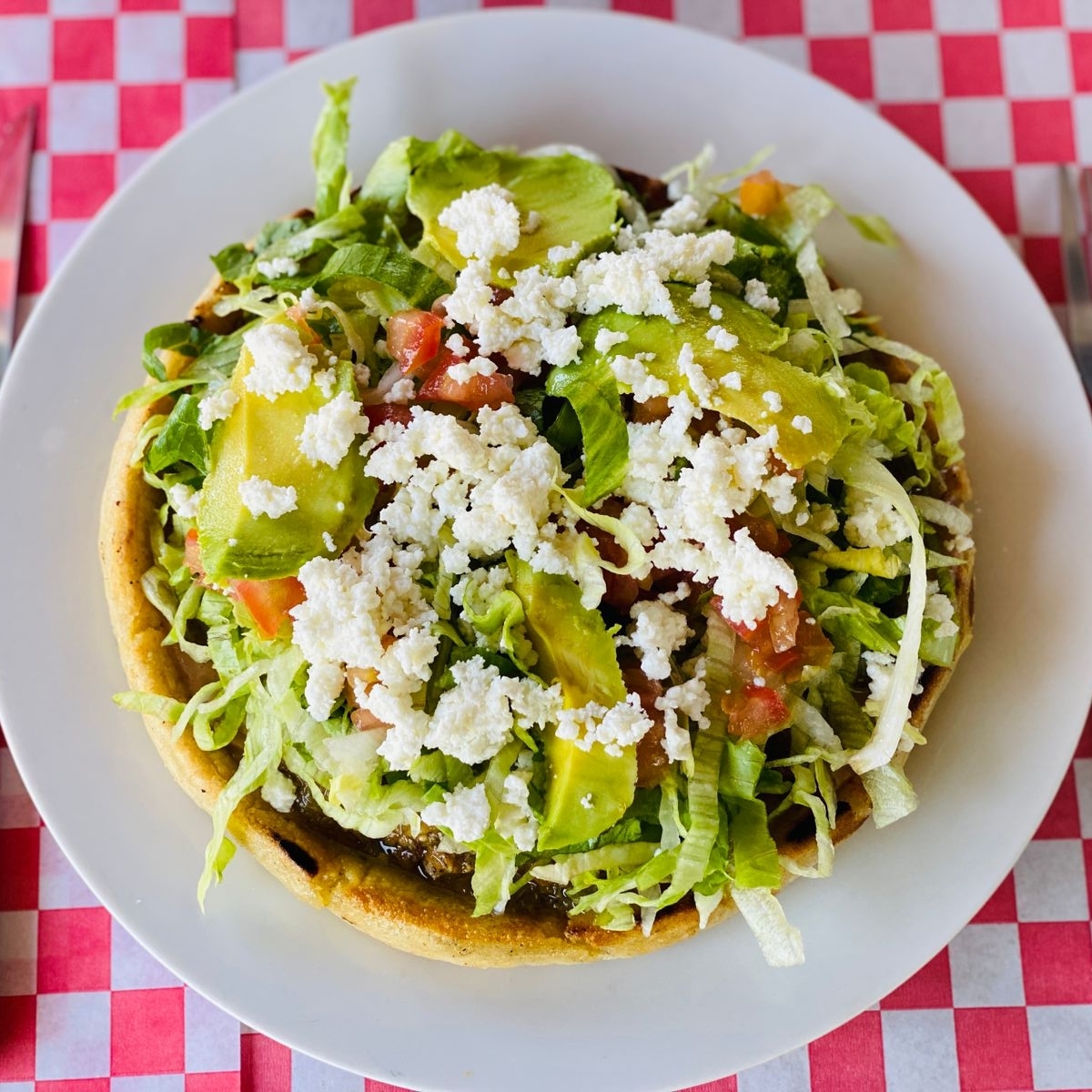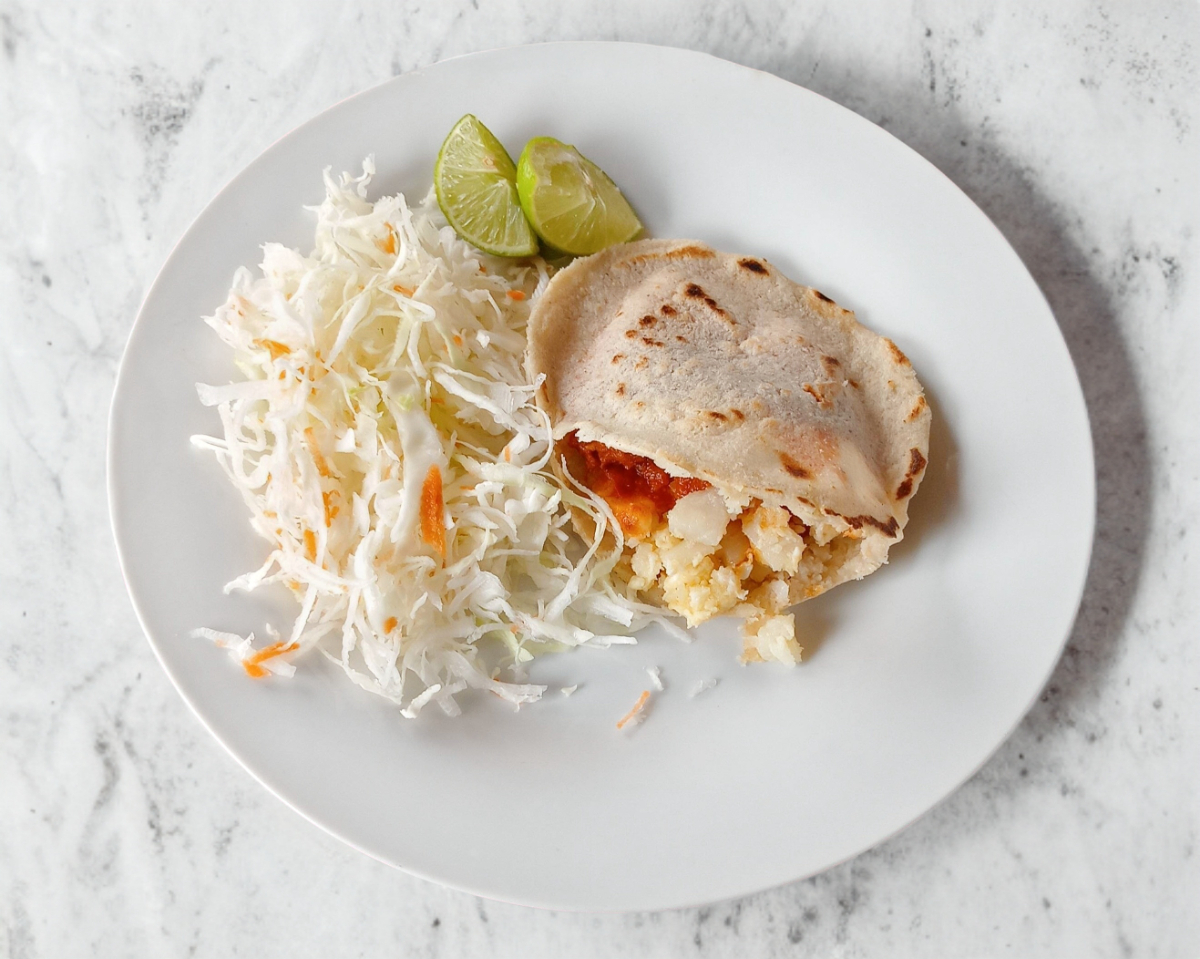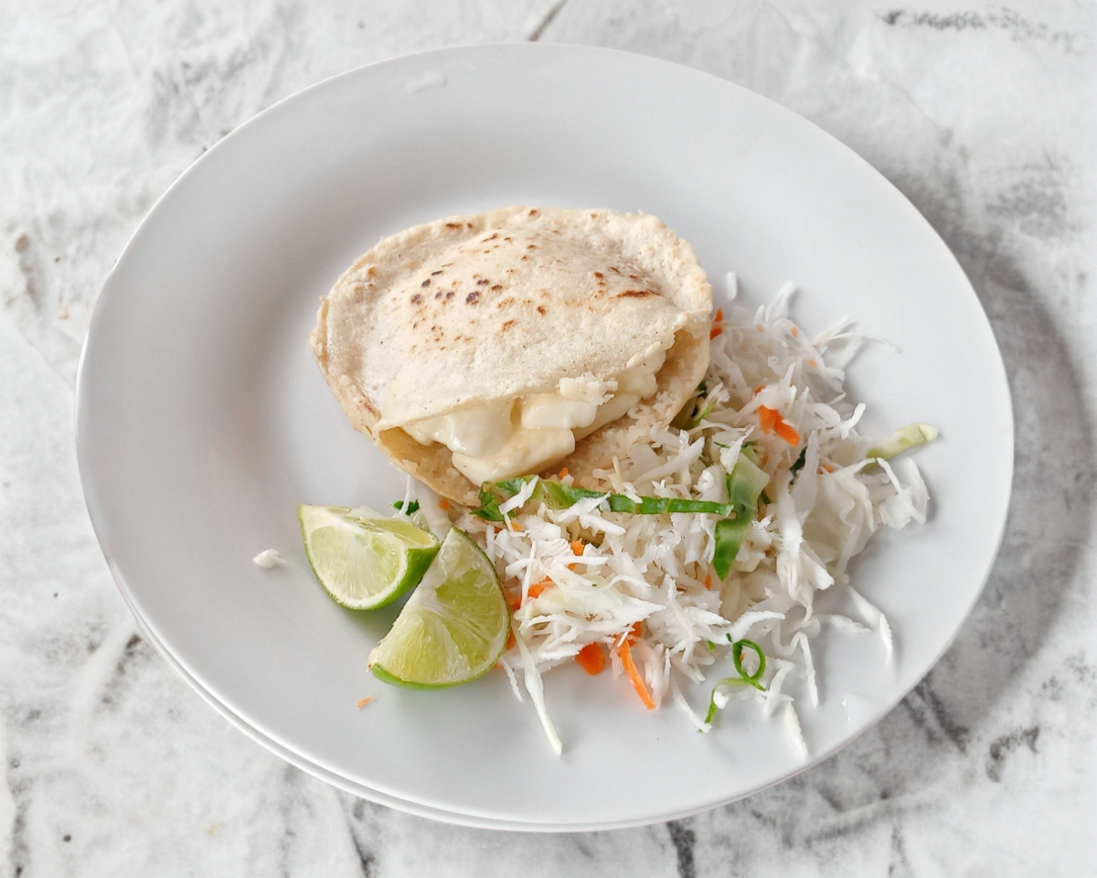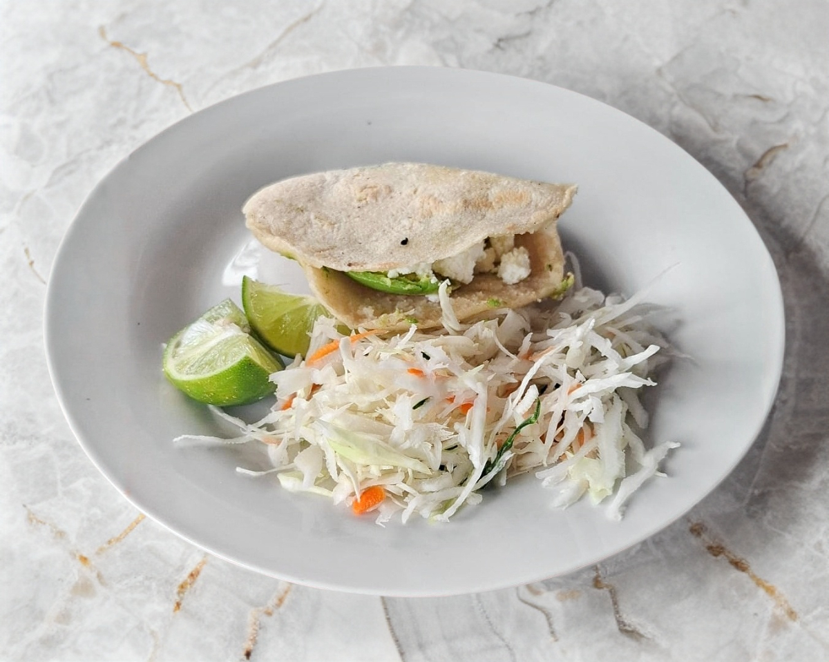 Gordita de maíz, con queso fresco y aguacate.
