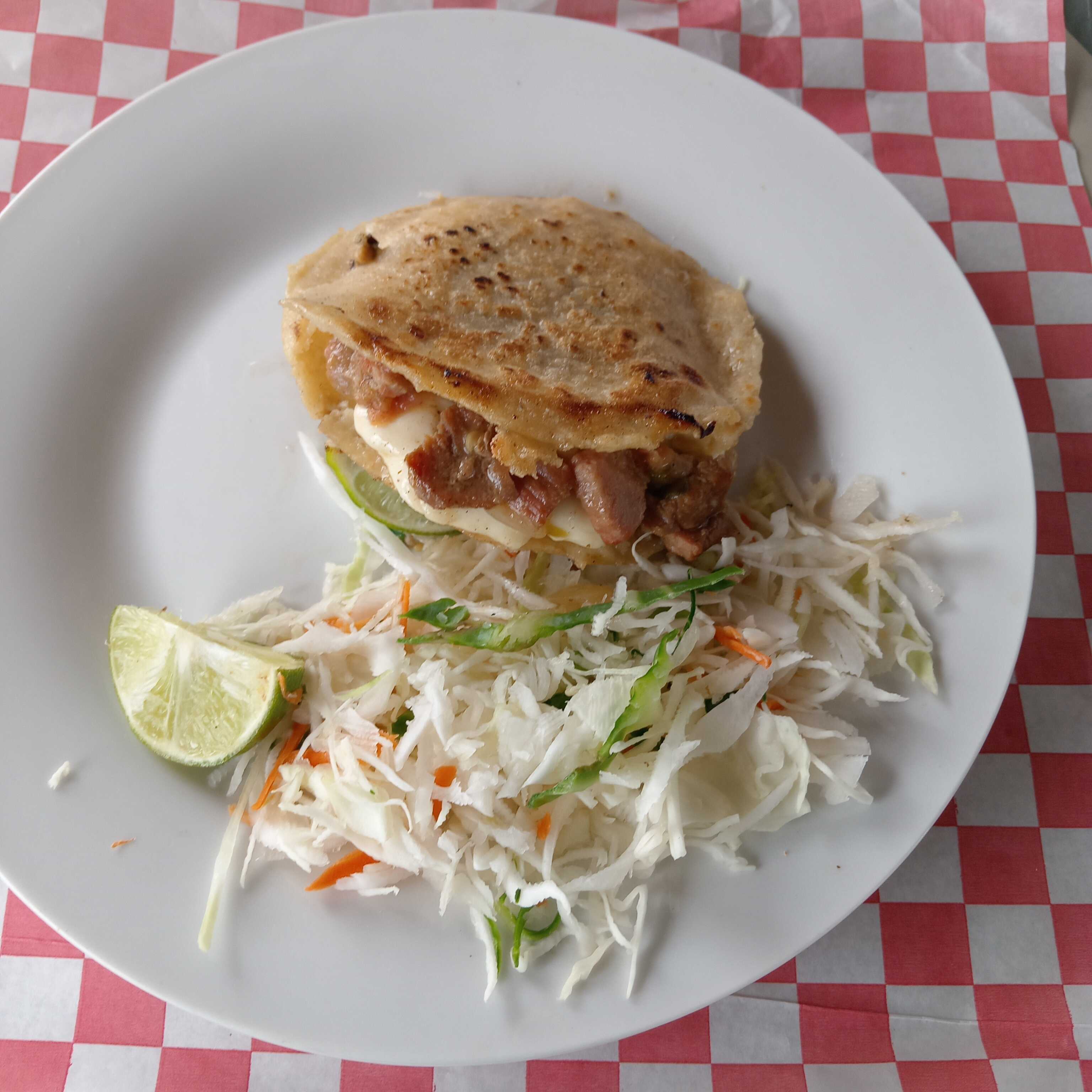 Gordita de maíz, con un queso panela con un guiso de tu preferencia