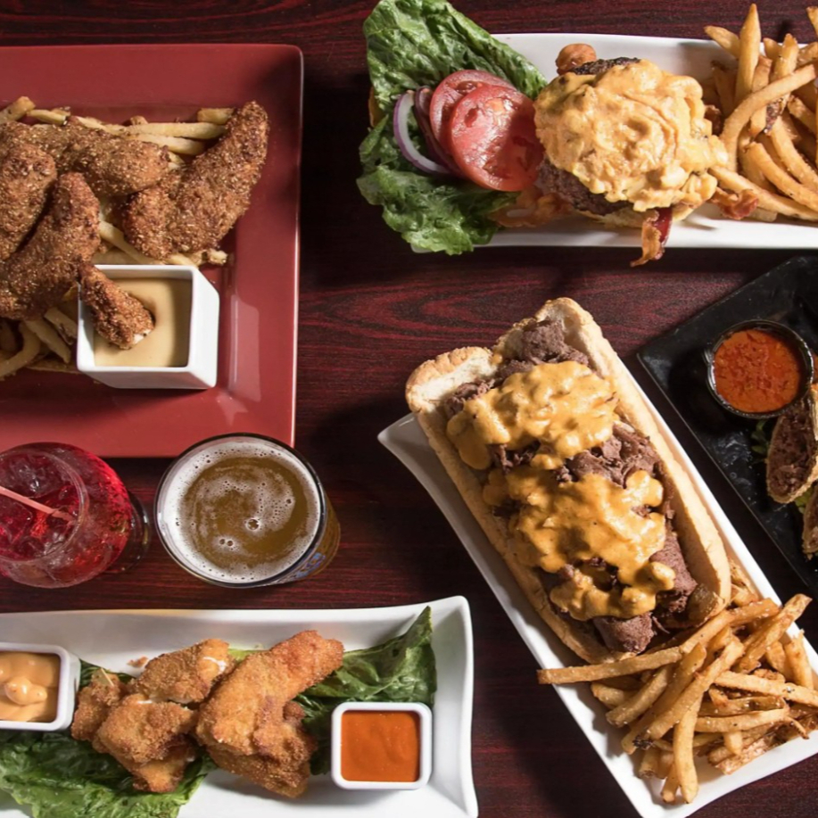 Pan horneado en casa, carne de res, lechuga, tomate, mayonesa, aguacate, jamón, queso amarillo, aros de cebolla y aderezo BBQ.