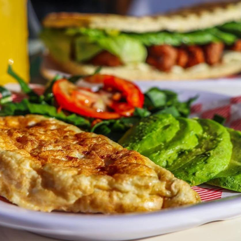 ¡Despierta con energía! Omelette de 1 huevo y 2 claras, jamón de pavo y queso panela, acompañado de ensalada fresca de lechuga, tomate y aguacate. Y para completar, 1 pieza de pan "Cero Cero" que es pura suavidad.