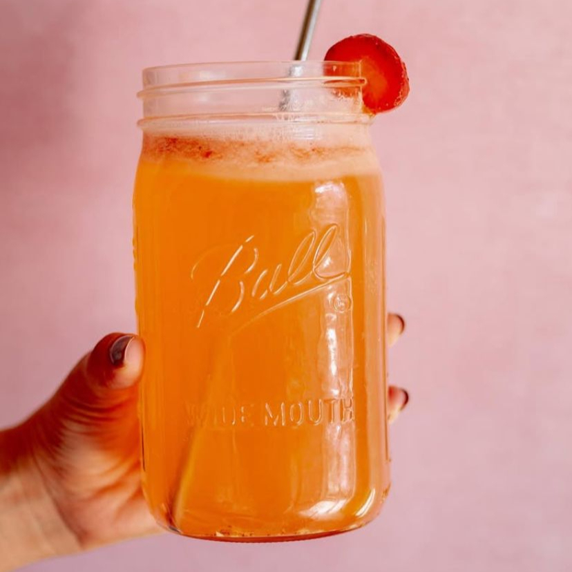 ¡Para sentirte bonita por dentro! Zanahoria, limón, manzana y jengibre en un jugo hecho al momento, sin azúcar ni nada raro. Puro sabor y cuidado en cada sorbo.