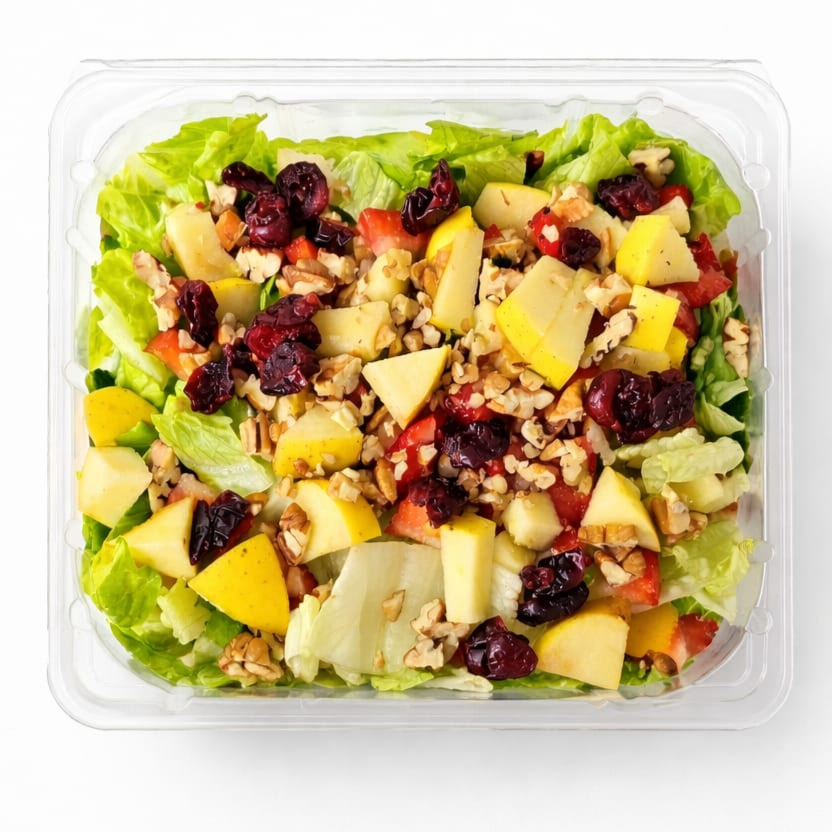Deliciosa ensalada dulce, preparada con lechuga, manzana verde, fresas, arandanos y nueces.