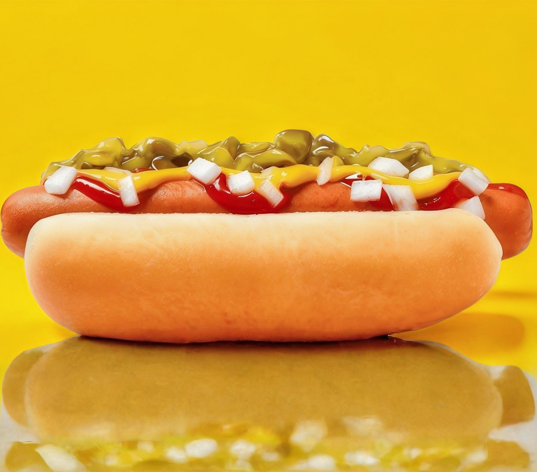 Riquísimo Hot Dog Clásico americano preparado con todo: Chile, tomate, cebolla, catsup.