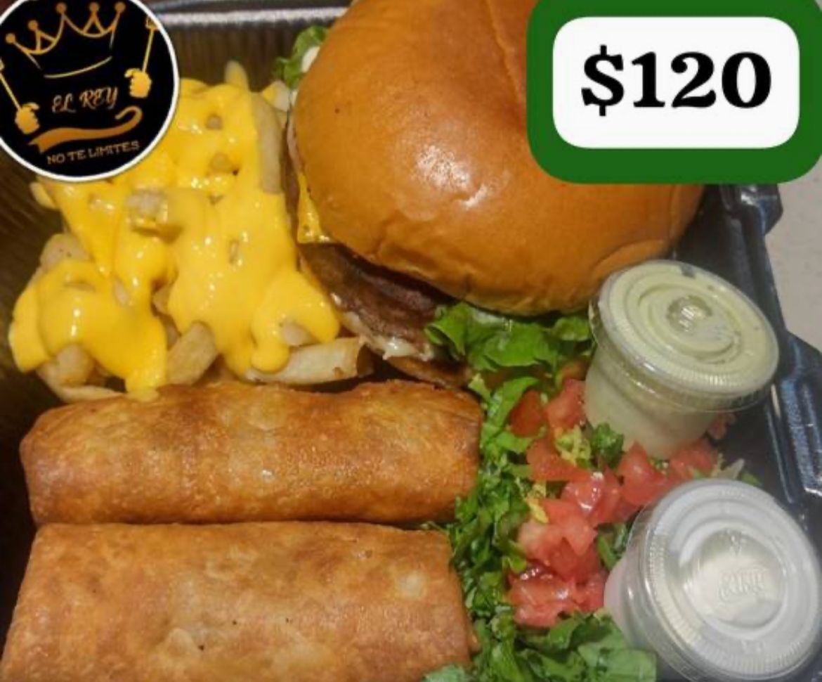 Hamburguesa Brioche/2 Burritos Frijoles Chorizo