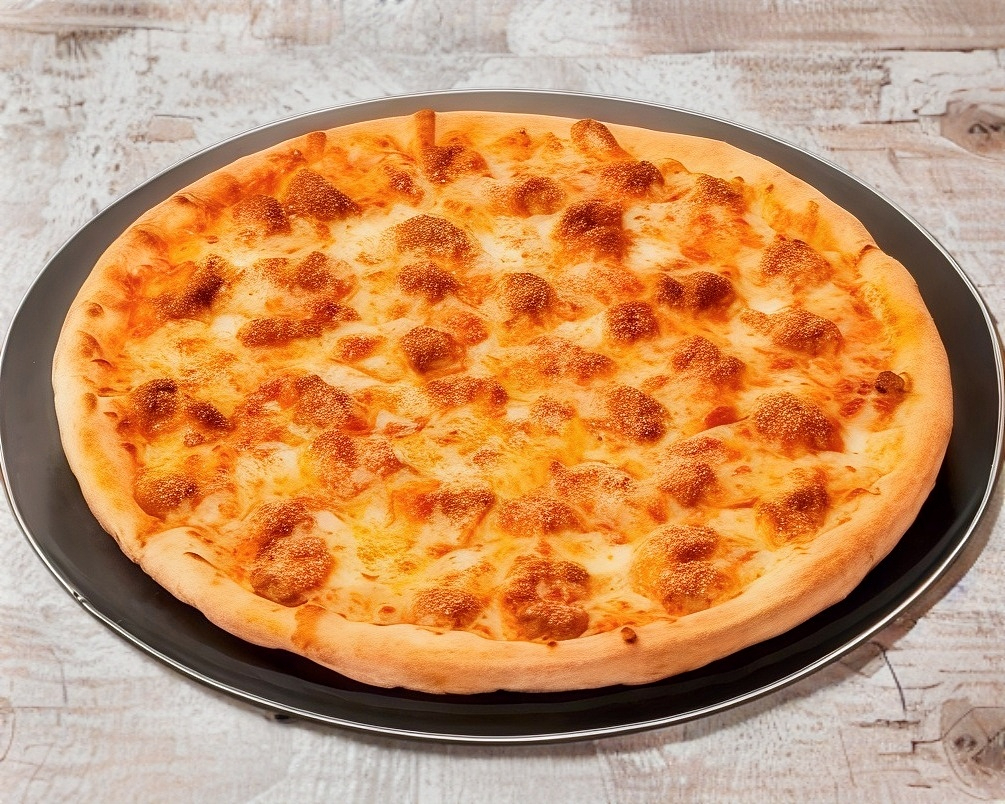 Pizza de queso preparación de la casa grande 35 cm de 8 rebanadas.
