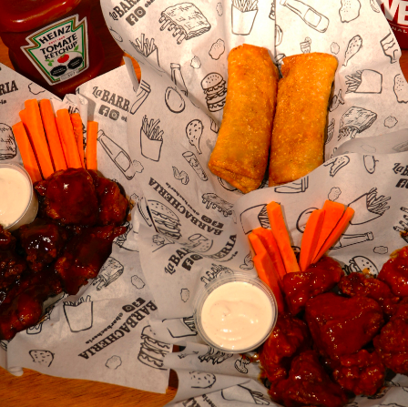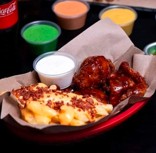 1/2 Kilo de alitas, 10 boneless, 3 elotes, 1 chilidog y papas fritas.