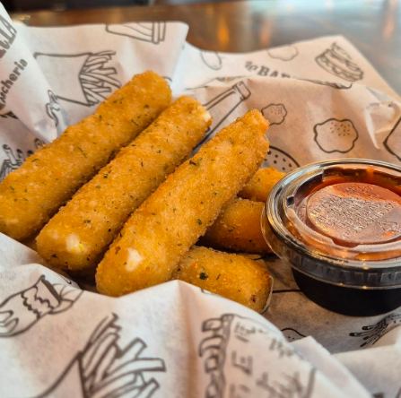 Tiras de queso mozarella con salsa marinara.