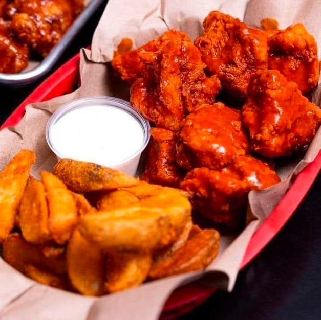 Deliciosa órden de cinco boneless, acompañada de una rica agua fresca. El sabor se manda según su existencia que puede ser de limón, jamaica, horchata o tamarindo.