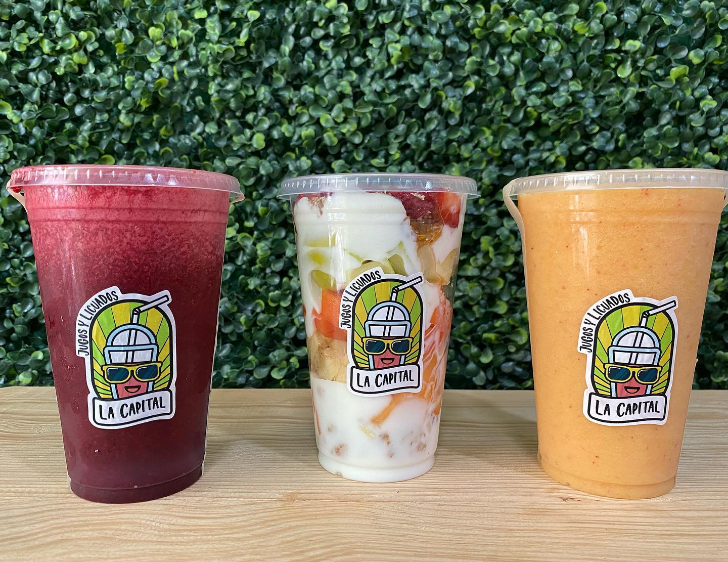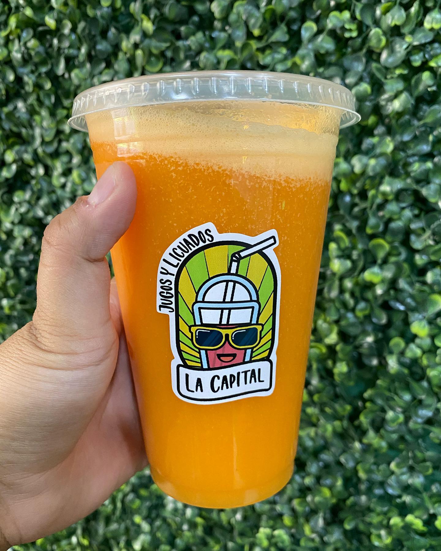 1/2 litro de jugo hecho con mango, fresas, piña y naranja