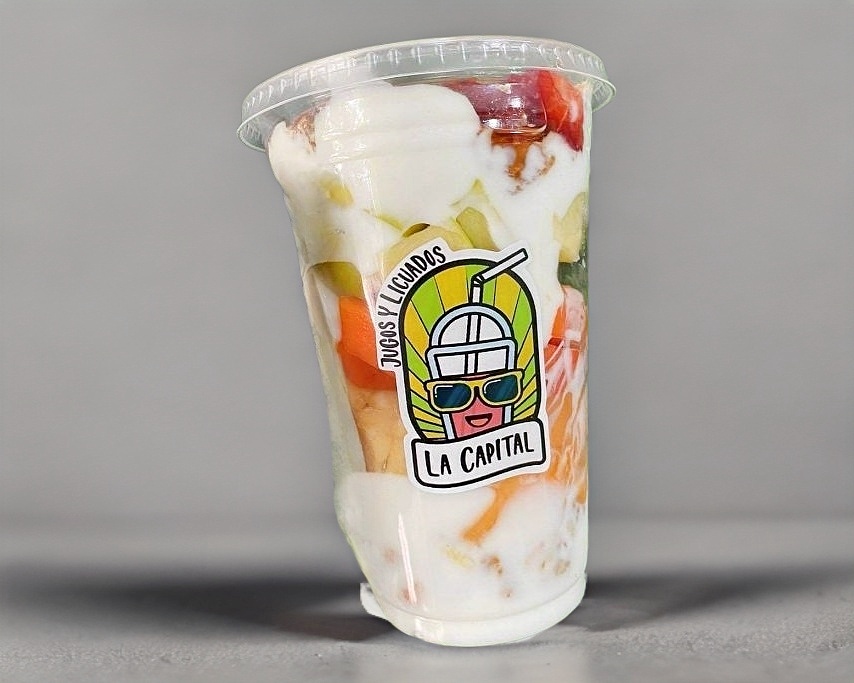 1/2 litro, yogurth light con melon, fresa, papaya, platano, manzana y un toque de miel de abeja