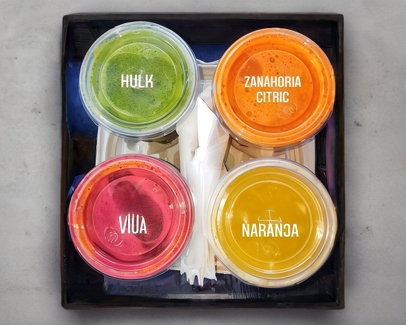 1/2 litro de jugo hecho con zanahoria, manzana, espinaca y naranja