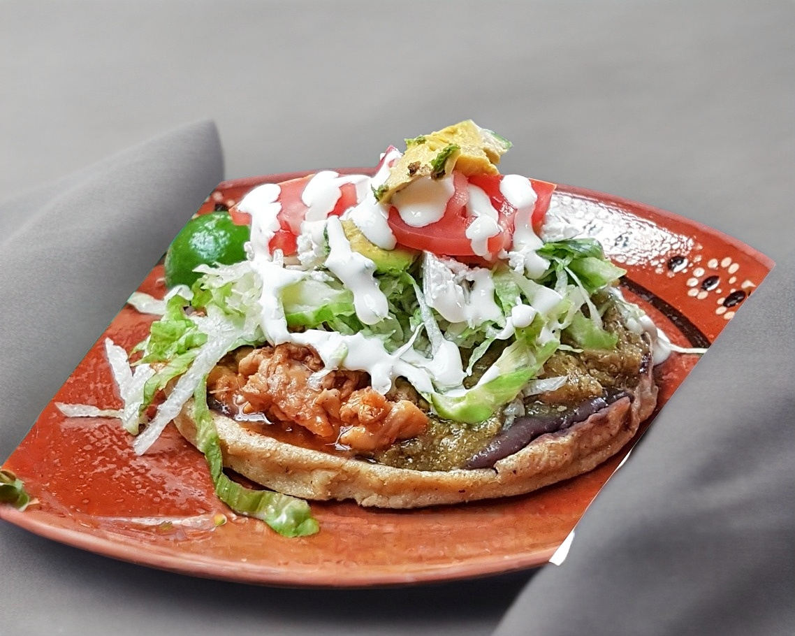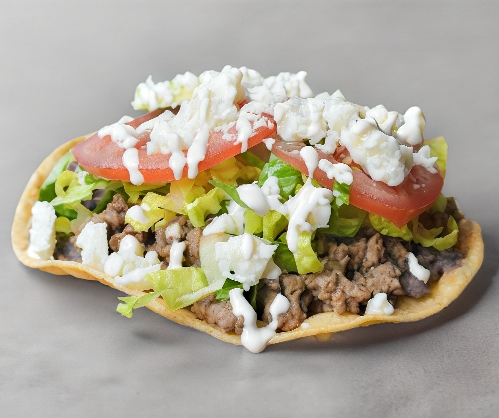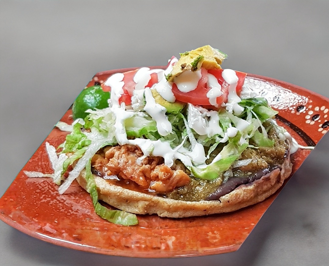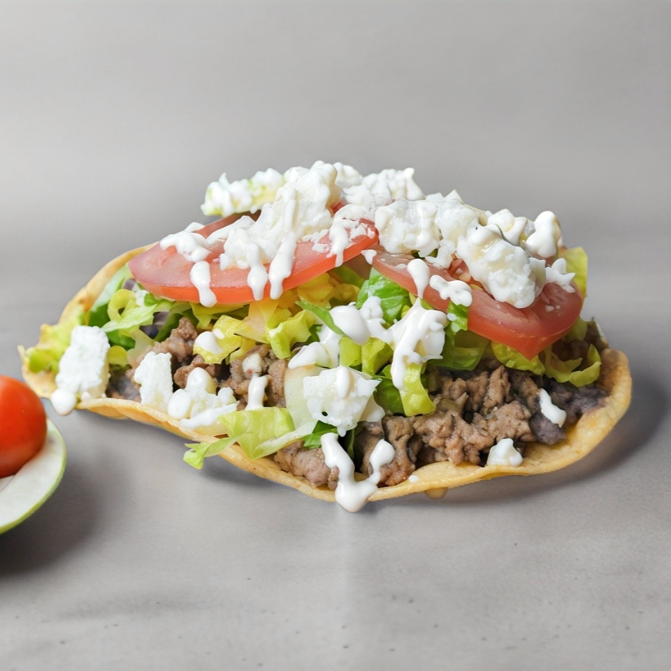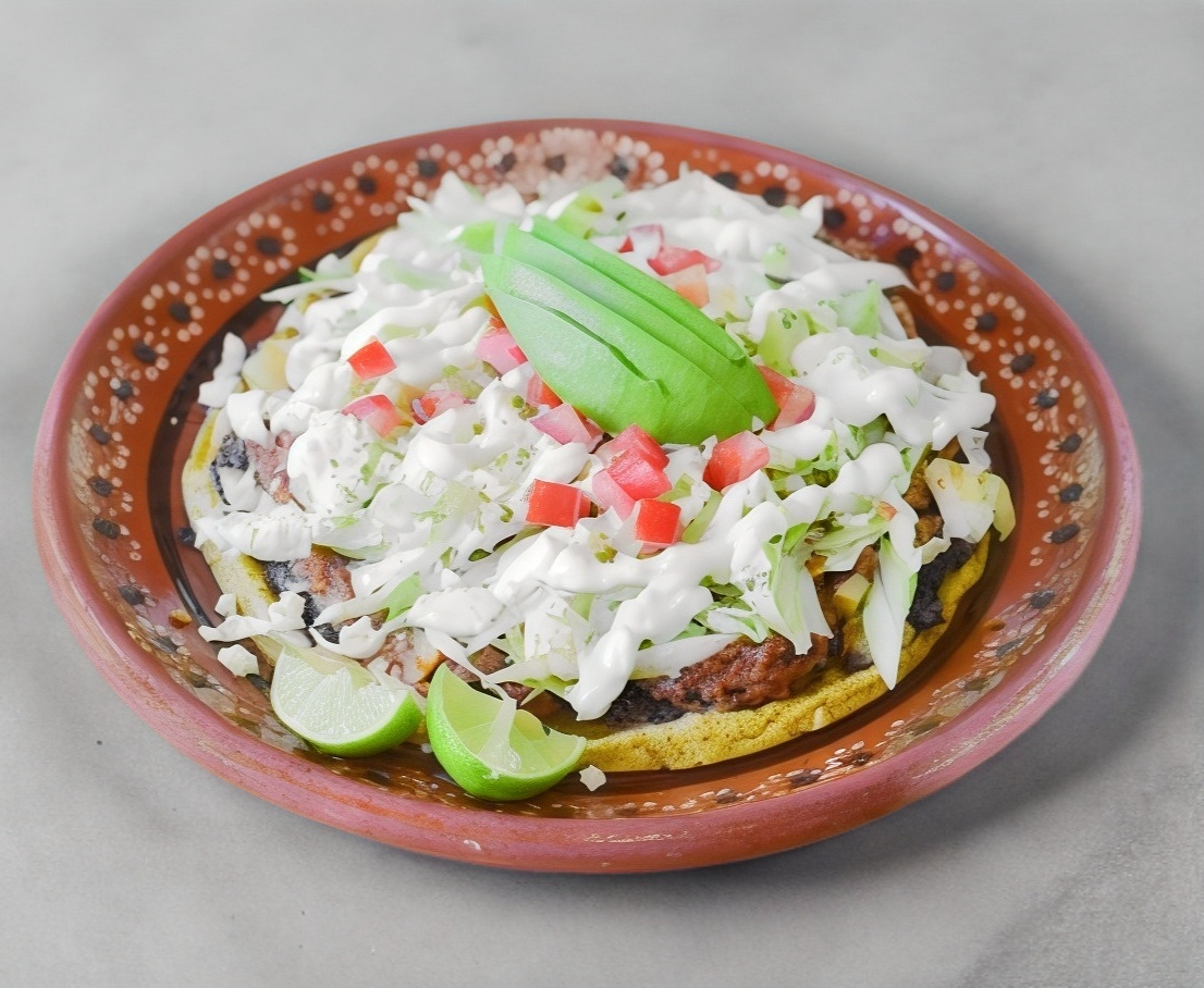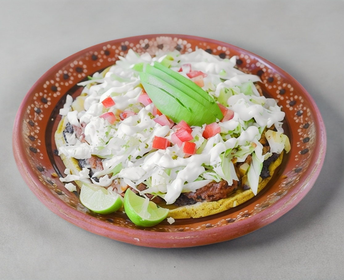 Elaborada con una tortilla recién hecha de 15 cm, acompañada de lechuga, tomate, limón y salsa.