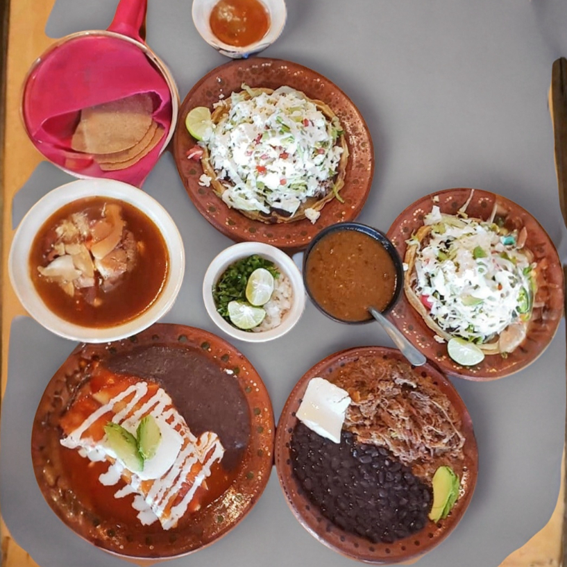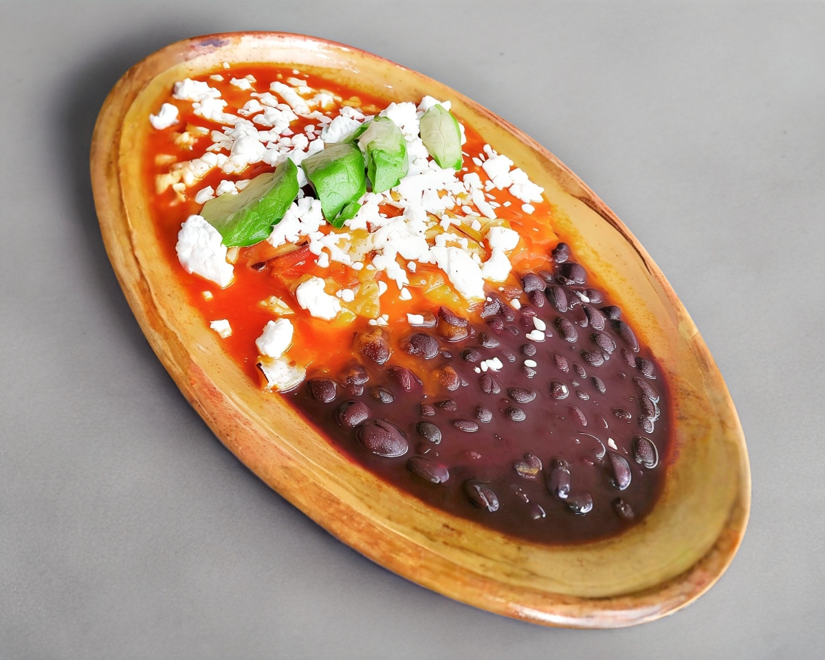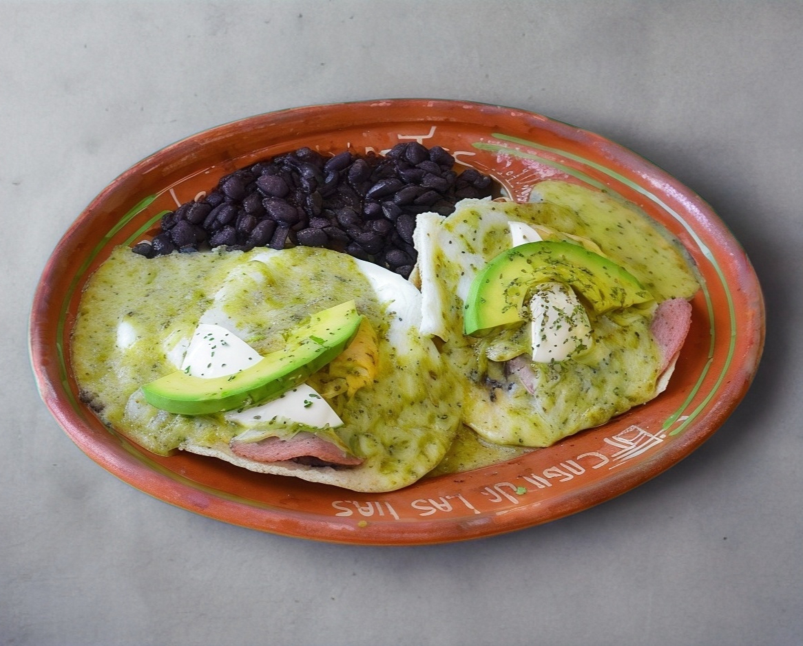 Deliciosa migada elaborada en cama de frijoles, lechuga, tomate, queso, crema y el guiso de tu preferencia.