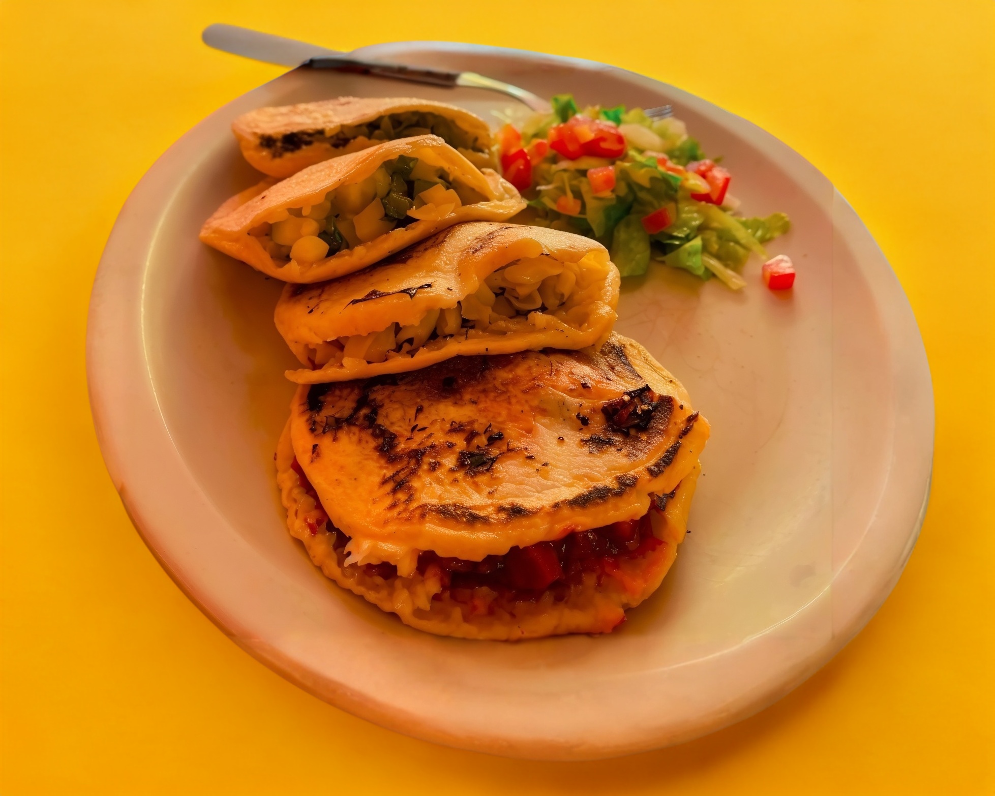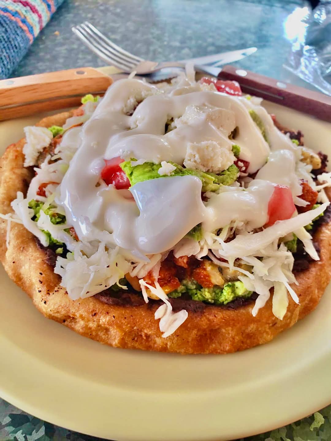 Elige 1 guiso favorito, sope de maíz con frijoles, queso, guiso y lechuga.