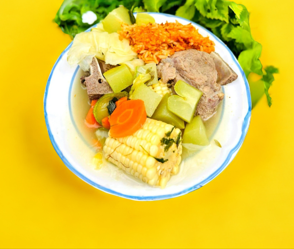 1/2 consome con birria incluye cebolla, cilantro, limon