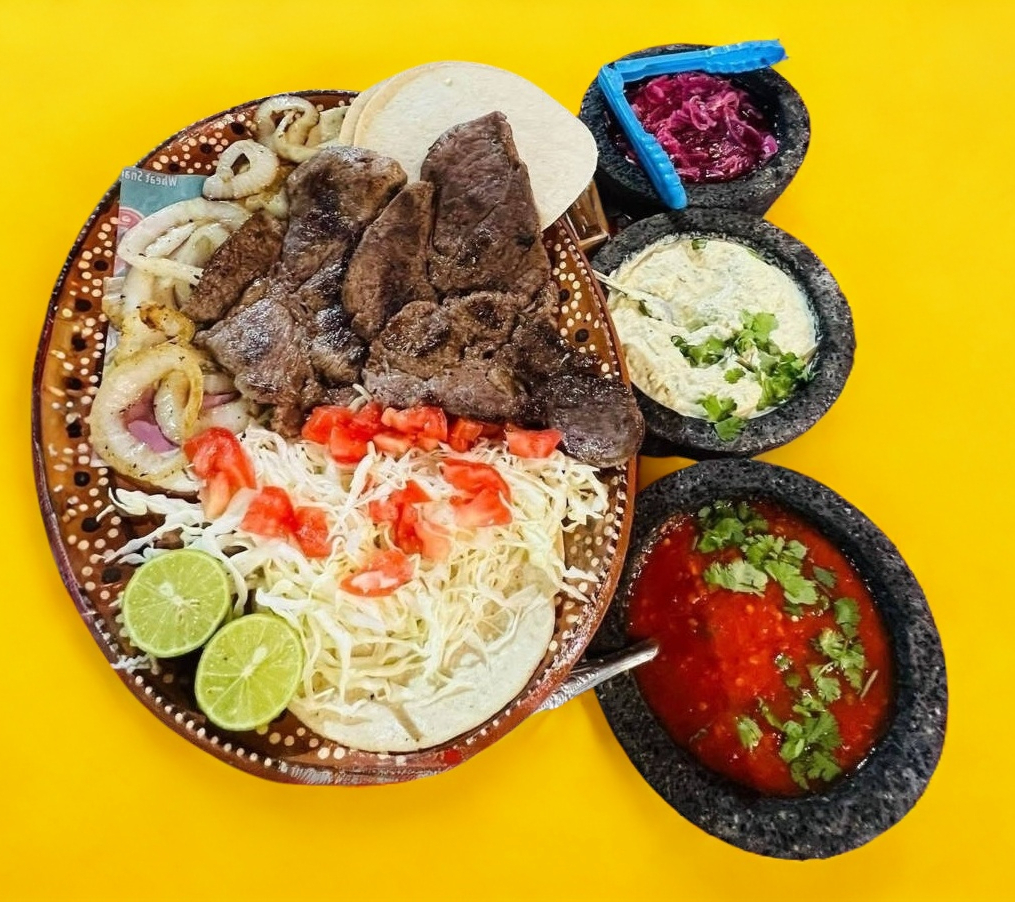 1 kg de barbacoa, salsas, cebolla, limon, cilantro