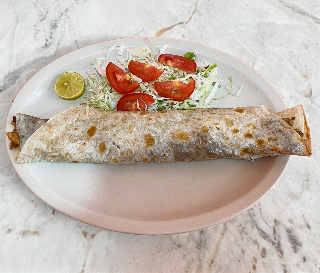 1 Flauta de harina, elaborada totalmente a mano (55 cm Apróx.), acompañada de repollo, salsa y limón. Ideal para una persona