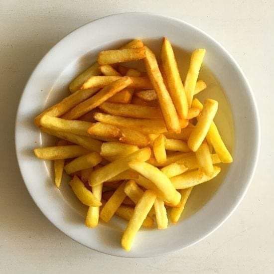 9 Nuggets de pollo acompañados de papas a la francesa. acompañado de katsup