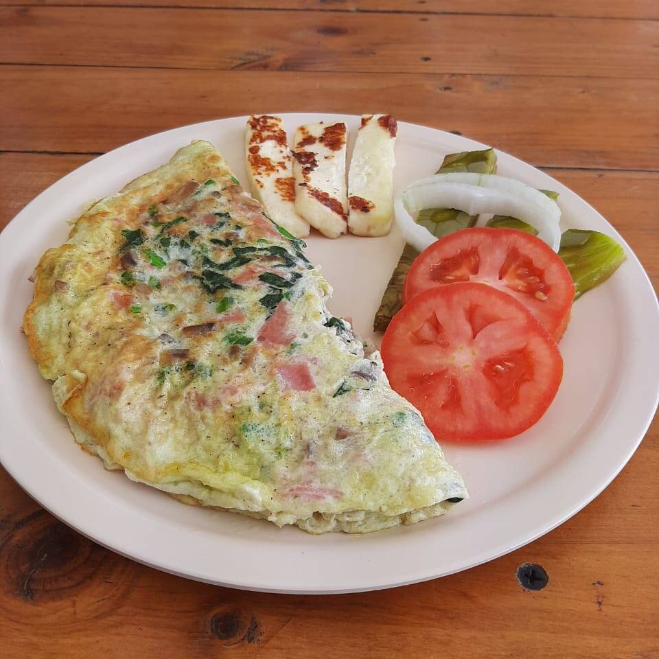 Prueba nuestro delicioso Omelette Light con Queso Panela, Nopales, Tomate, Champiñones y espinacas, acompañado con tortillas.