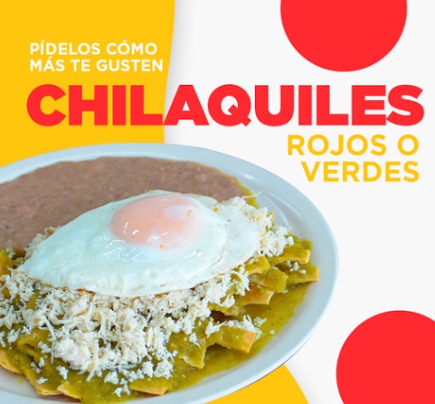 Chilaquiles rojos o verdes con queso y 1 huevo estrellado y frijoles