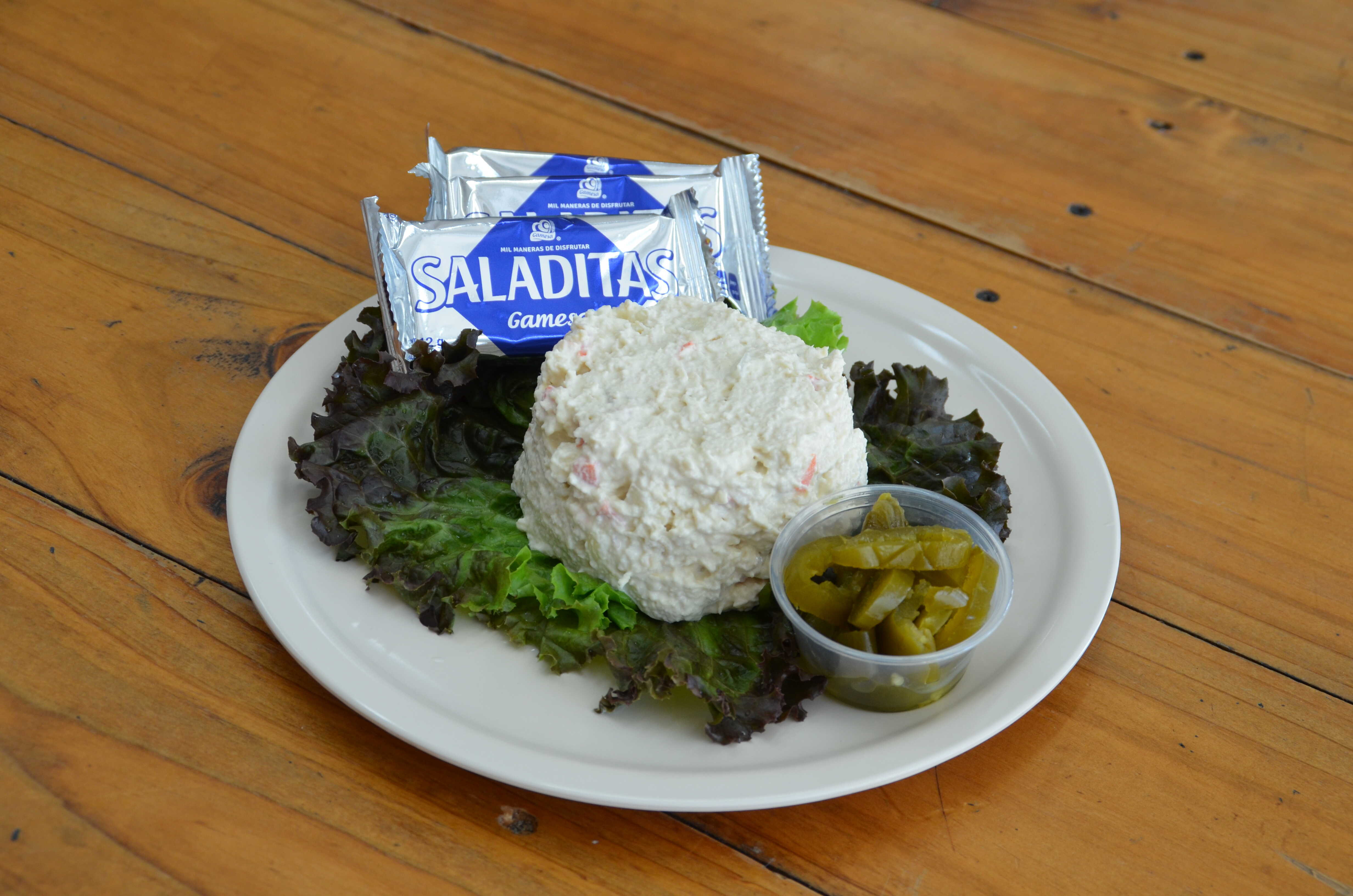 2 tacos suaves, 2 enchiladas, 2 tacos dorados, 1 tostada, 1 sope, mas papas fritas, verdura.