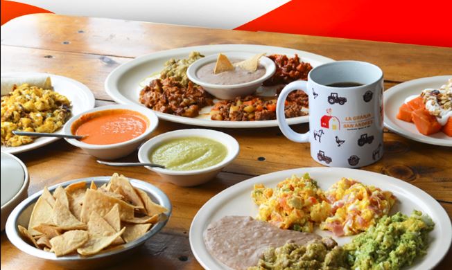 2 huevos al gusto, 2 guisos, frijoles, tortillas y 2 hot cakes.